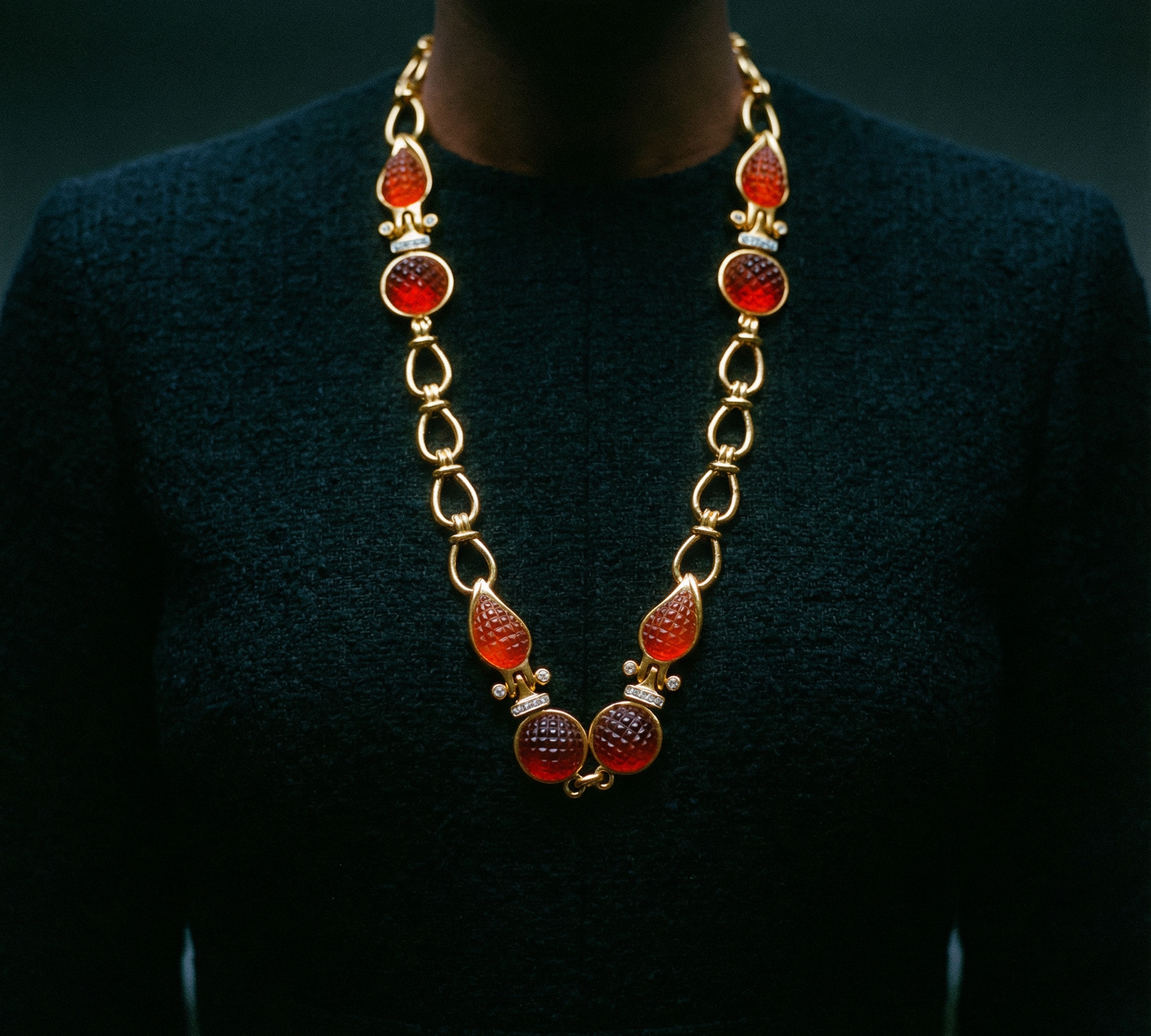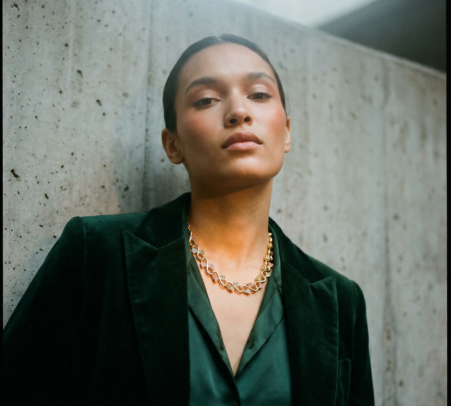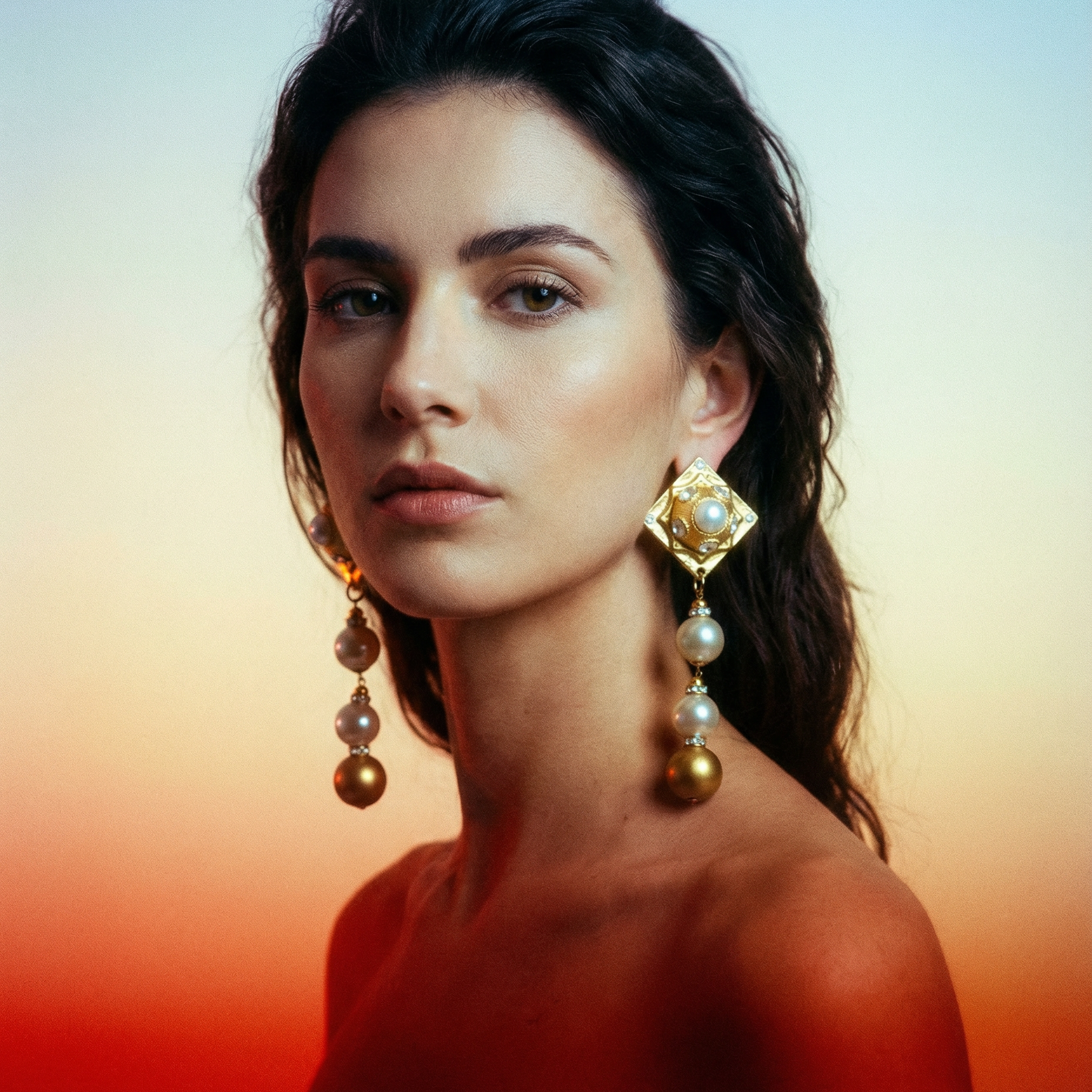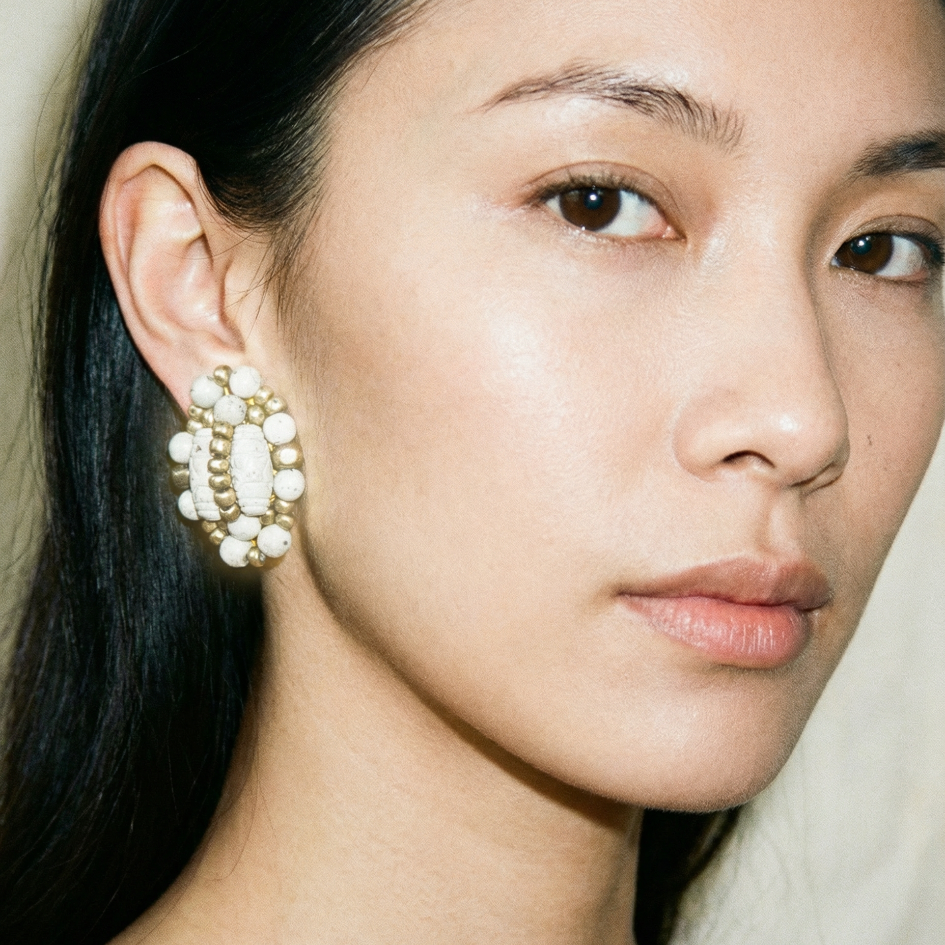 La sesión, fotografiada por Mario Sorrenti, muestra a Hailey con looks sofisticados donde los accesorios marcan la diferencia. Entre ellos, destacan los pendientes Amira originales de la marca Nina Ricci, seleccionados entre nuestra colección, una pieza única que aporta un toque audaz y elegante al estilismo.