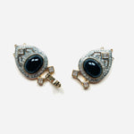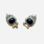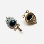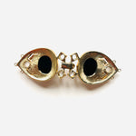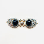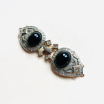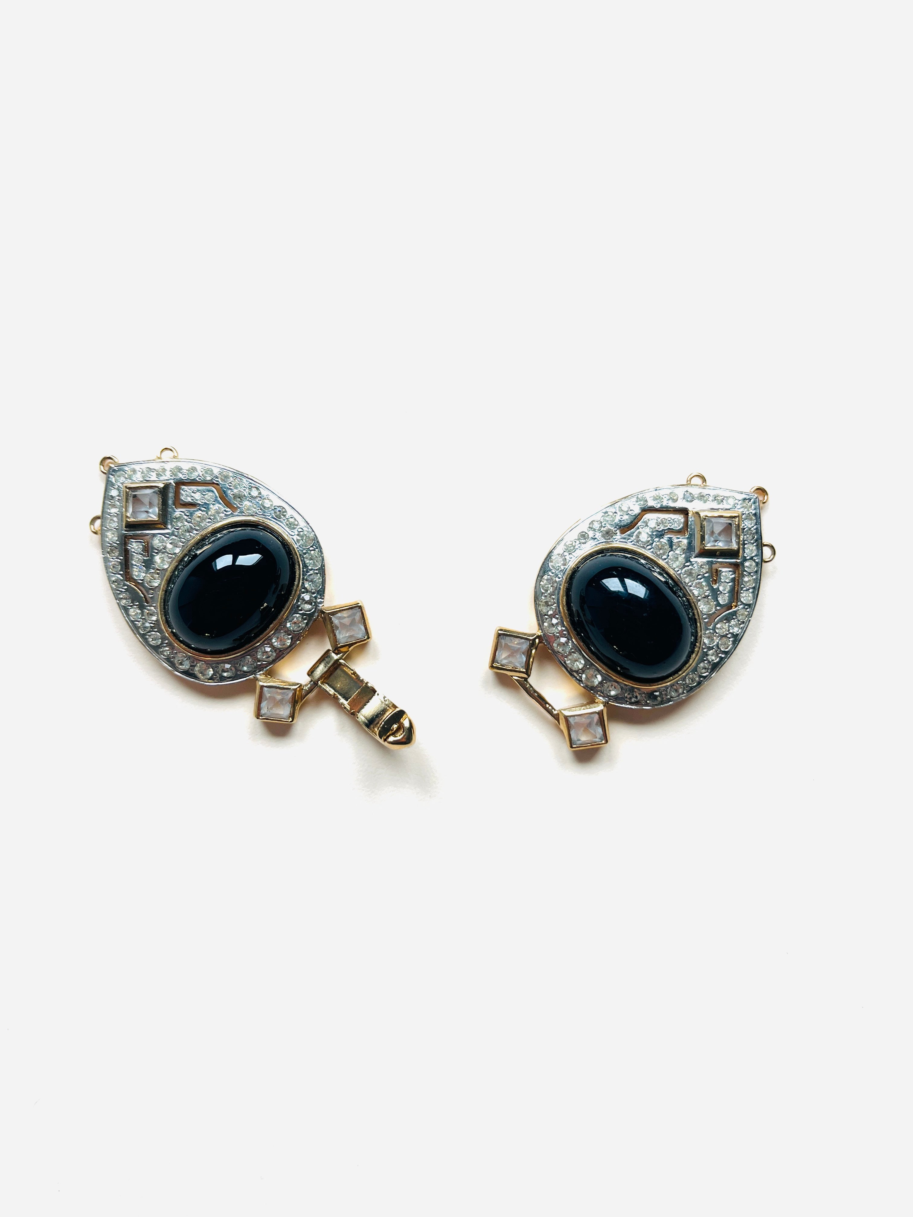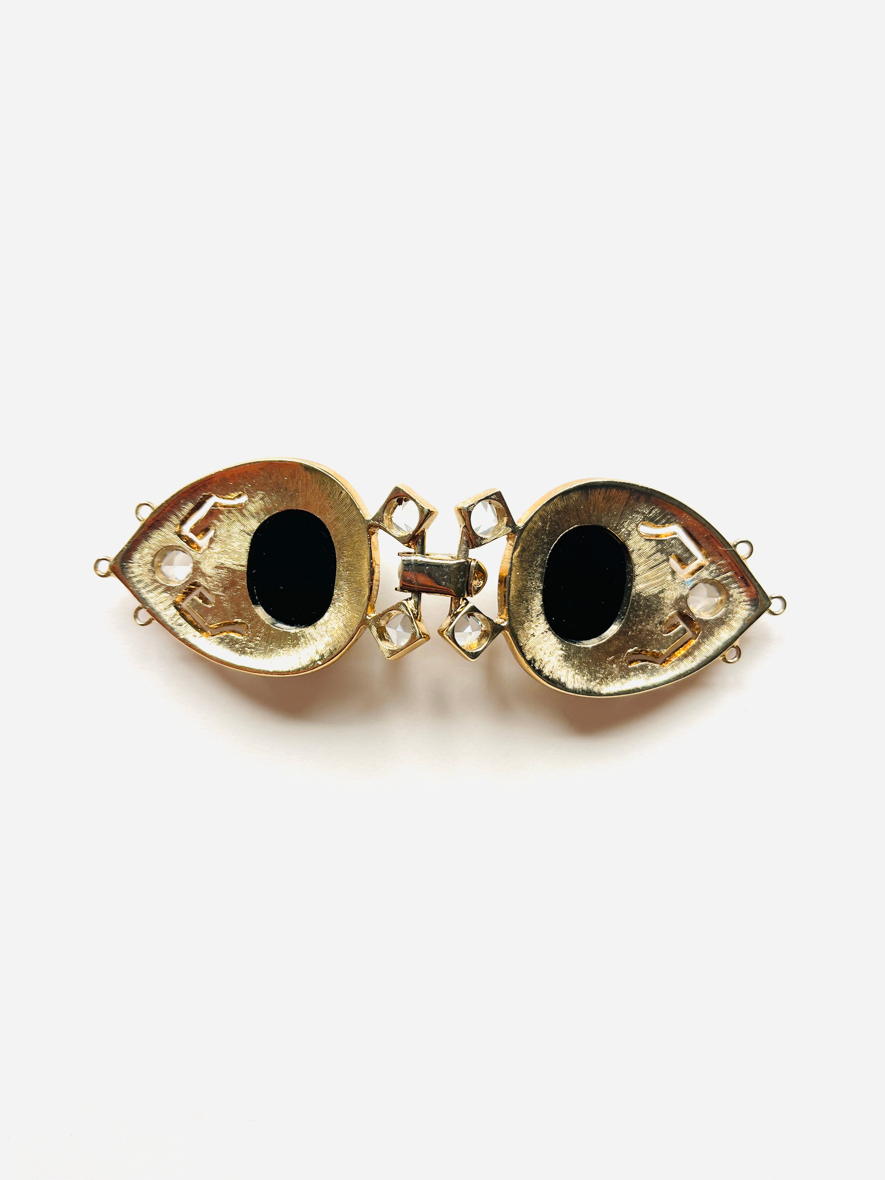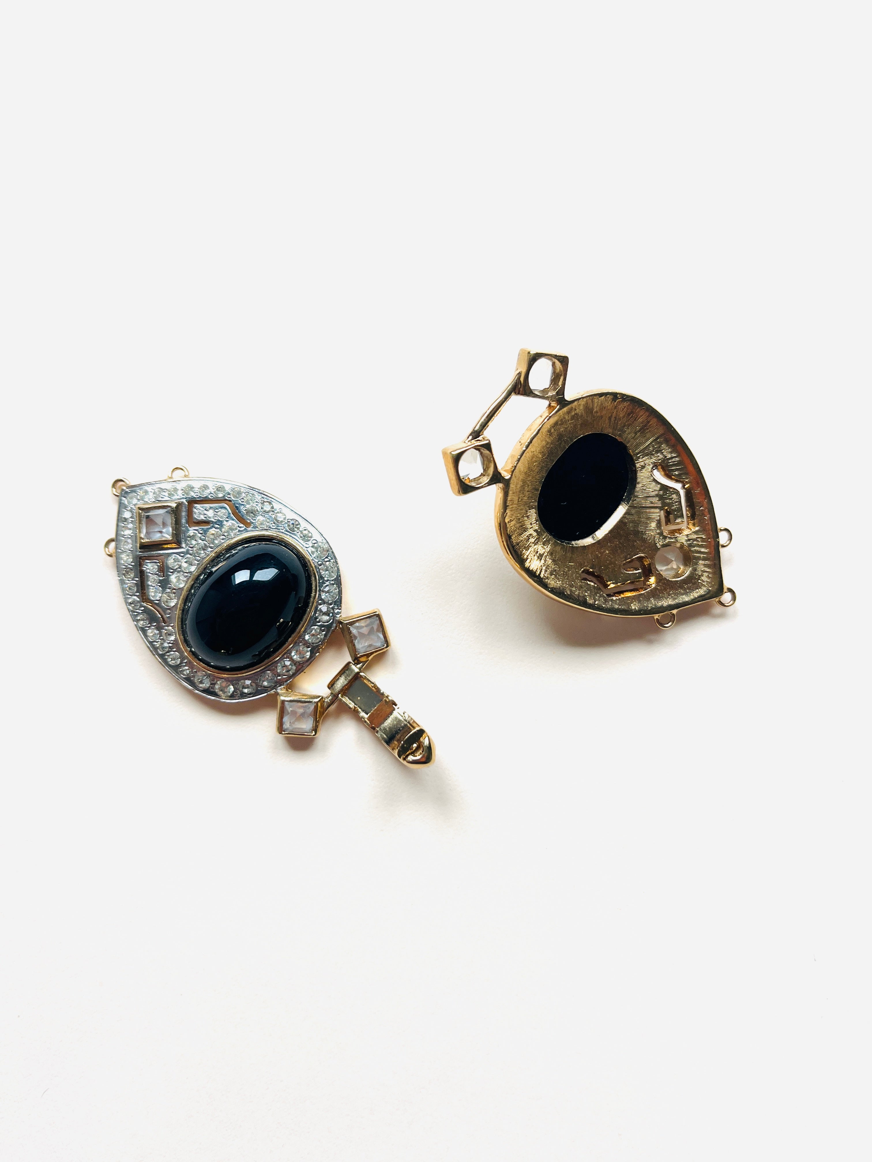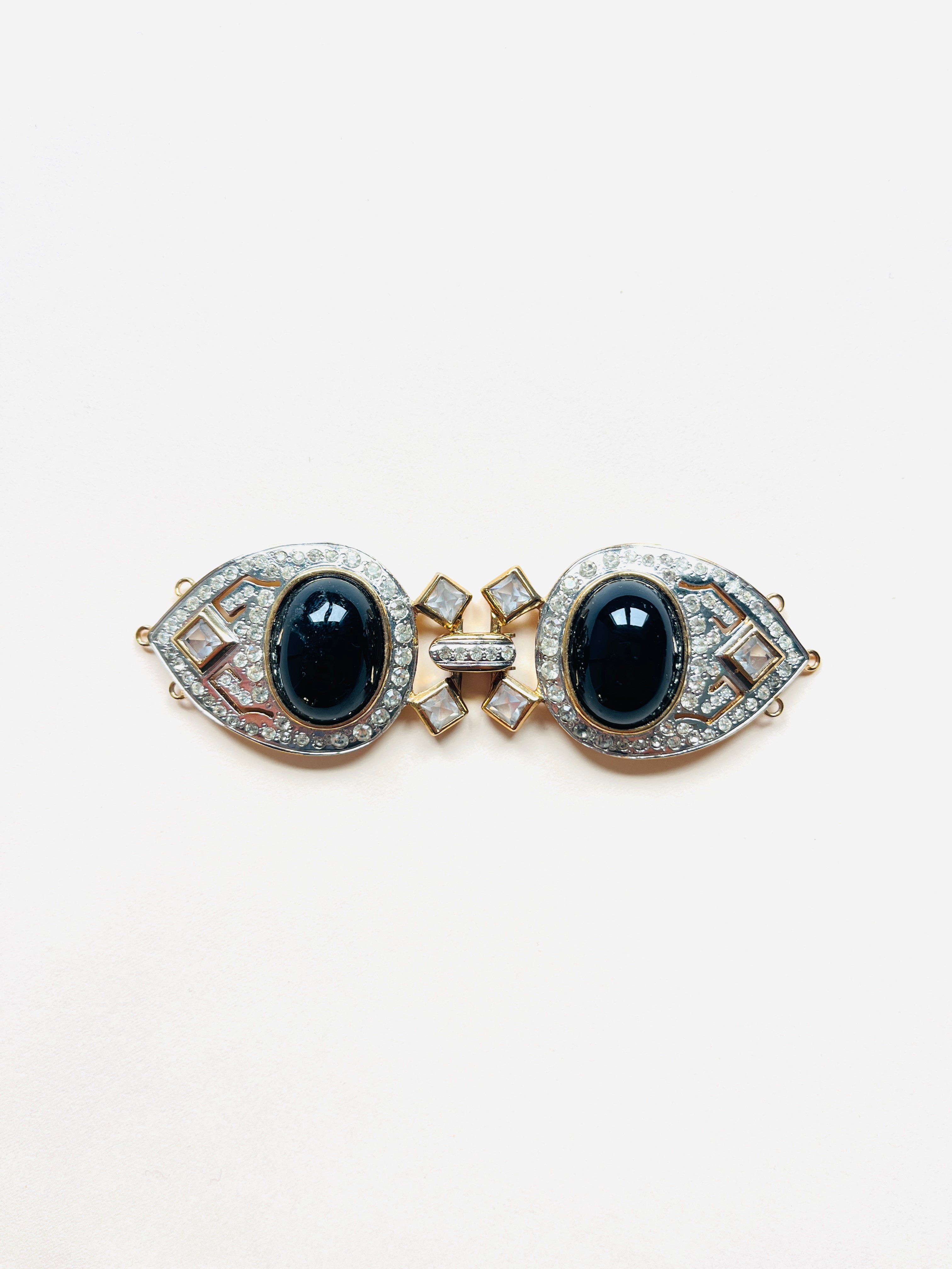 Maxi cierre joya original de los años 90. Base dorada y plateada con detalles de apliques en cristal blanco y negro.