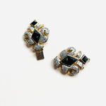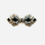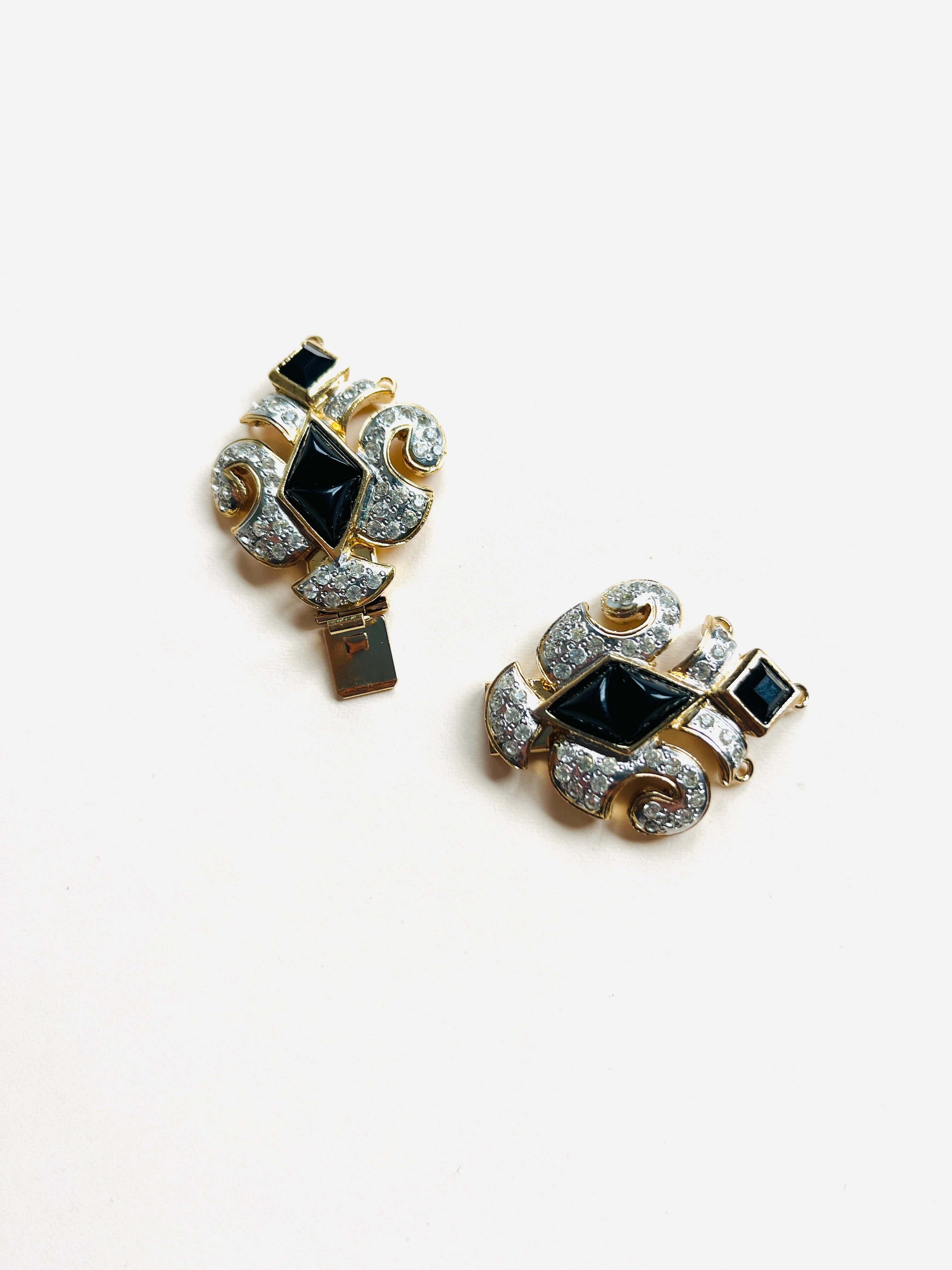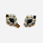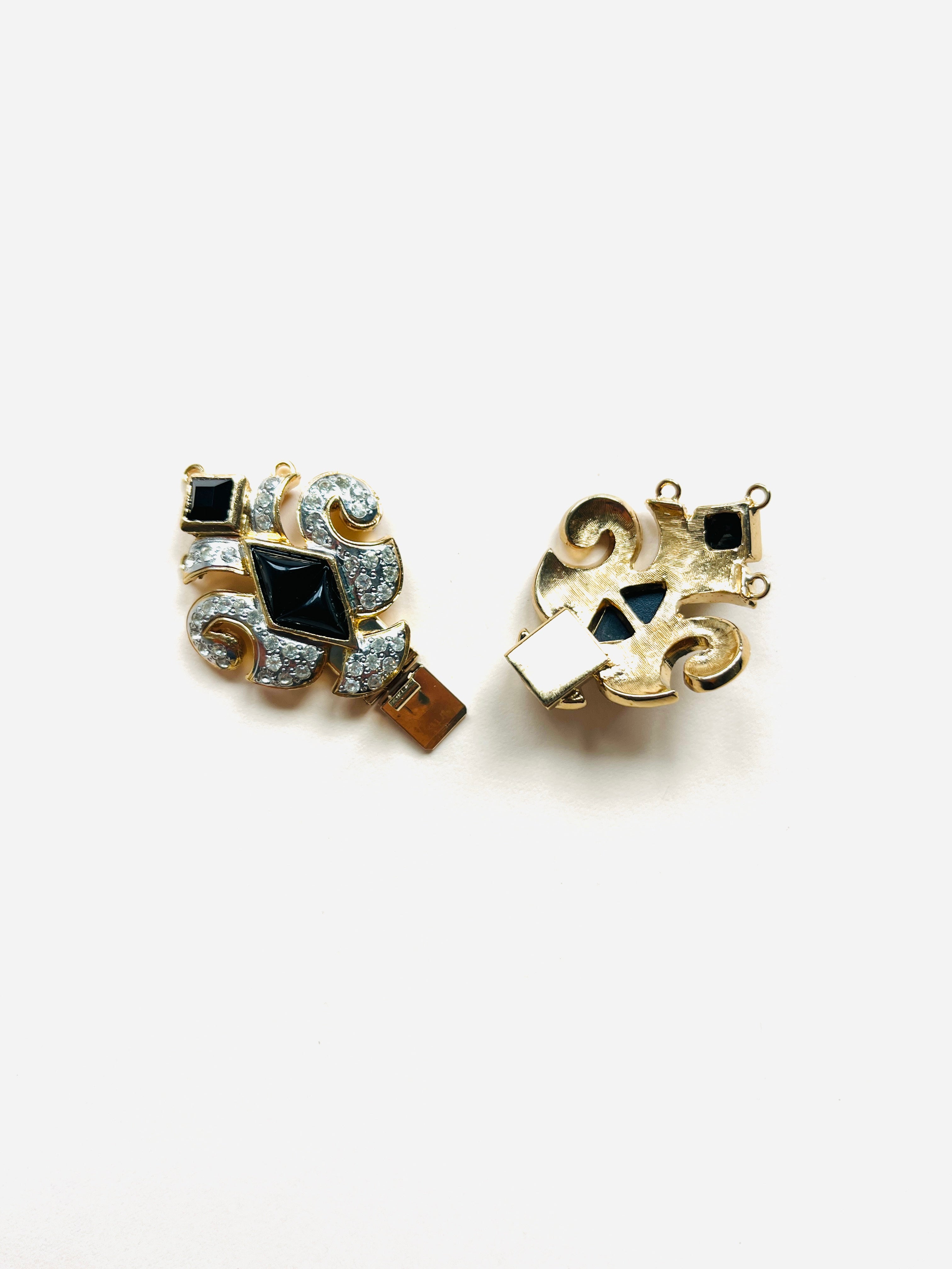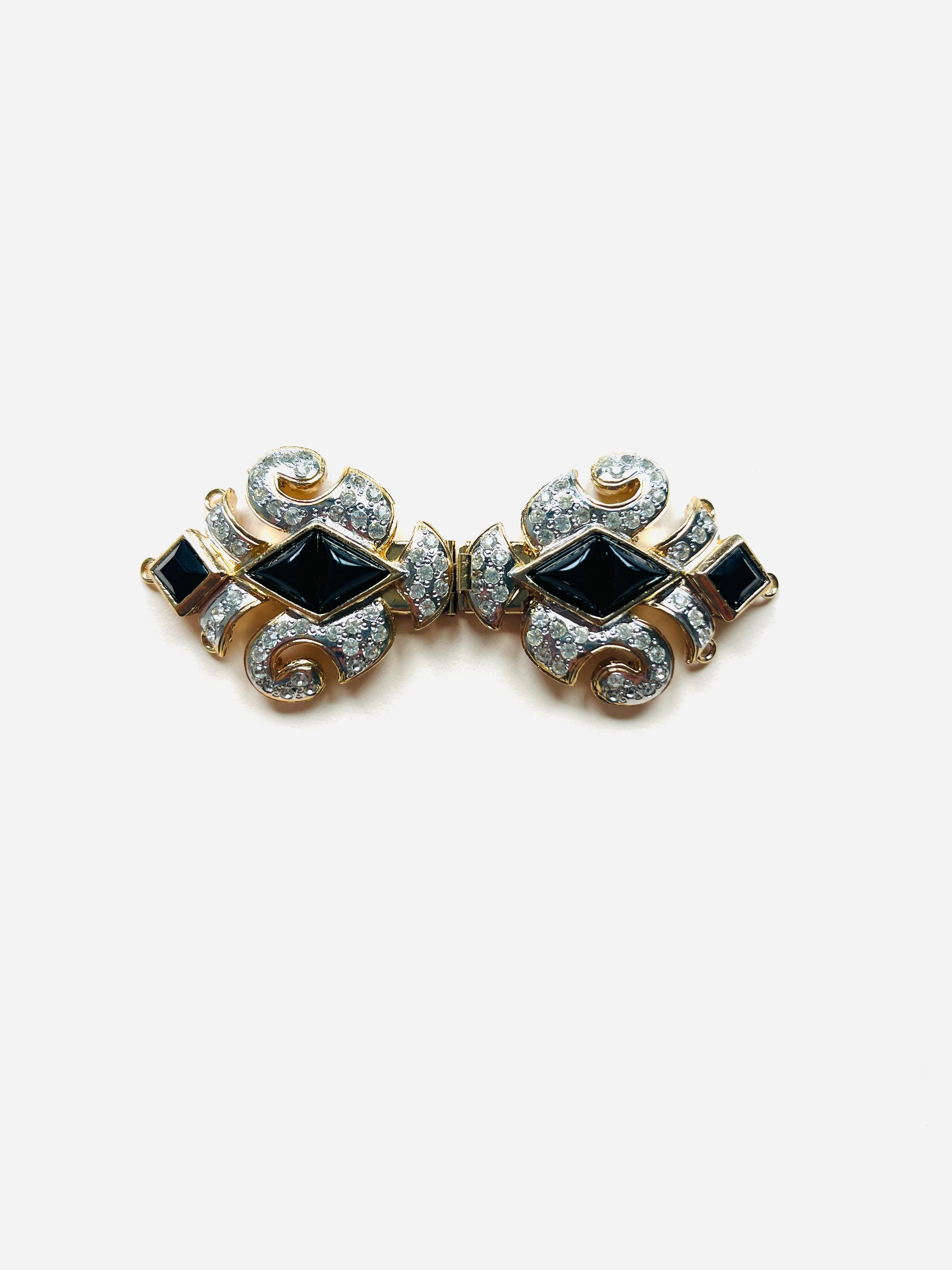 Maxi cierre joya original de los años 90. Base dorada y plateada con detalles de apliques en cristal blanco y negro.