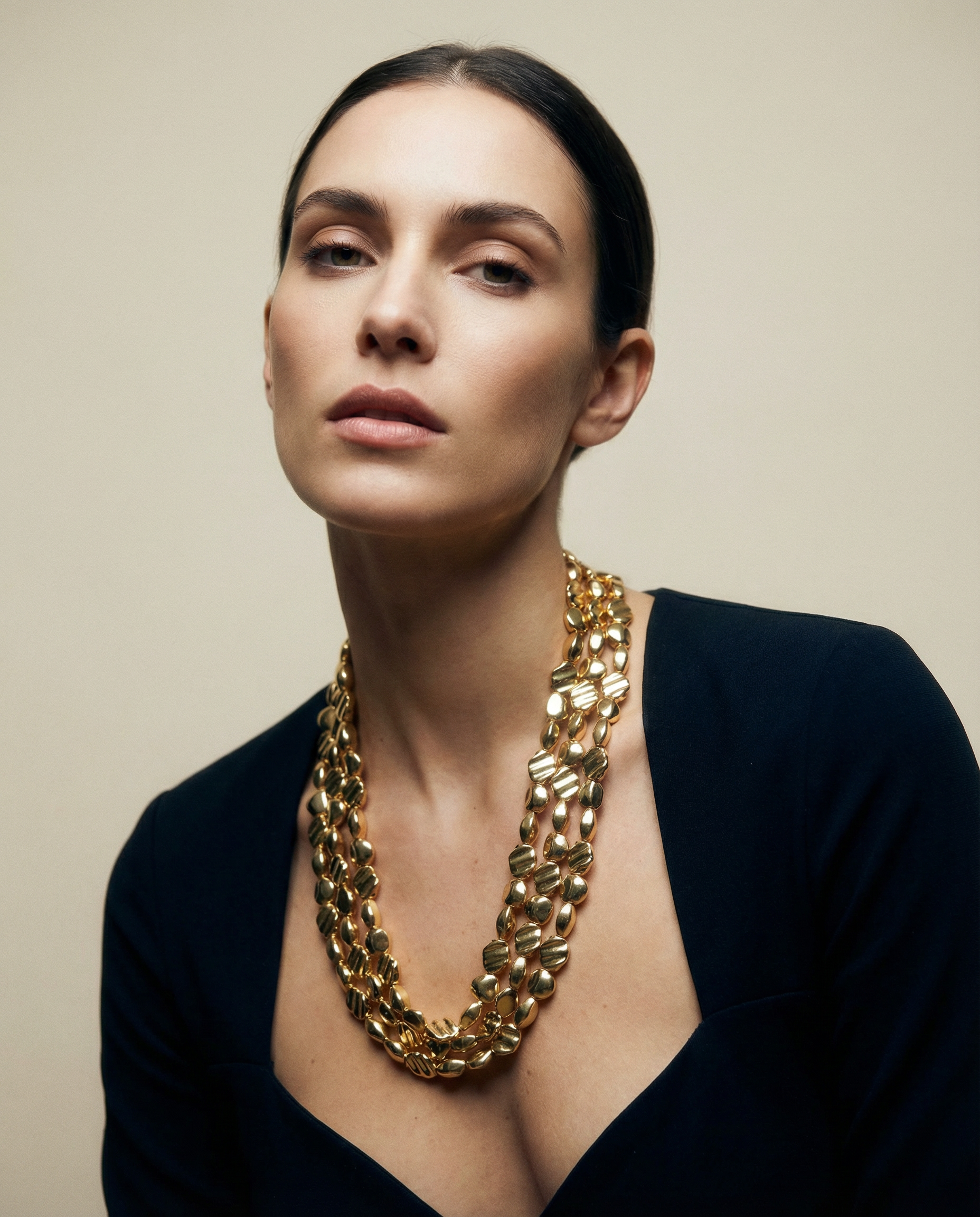 Original vintage choker from the 90s. Gold base with triple gold chain.