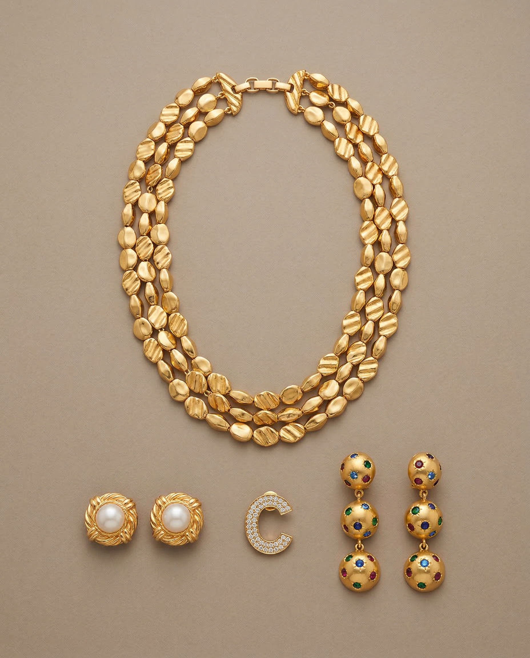 European craftsmanship (France, Italy, Spain, and the United Kingdom) and American production (the United States and Canada) ensure that every piece remains in exceptional condition despite the passage of time. All materials are of the highest quality, making each item comparable to fine costume jewelry.