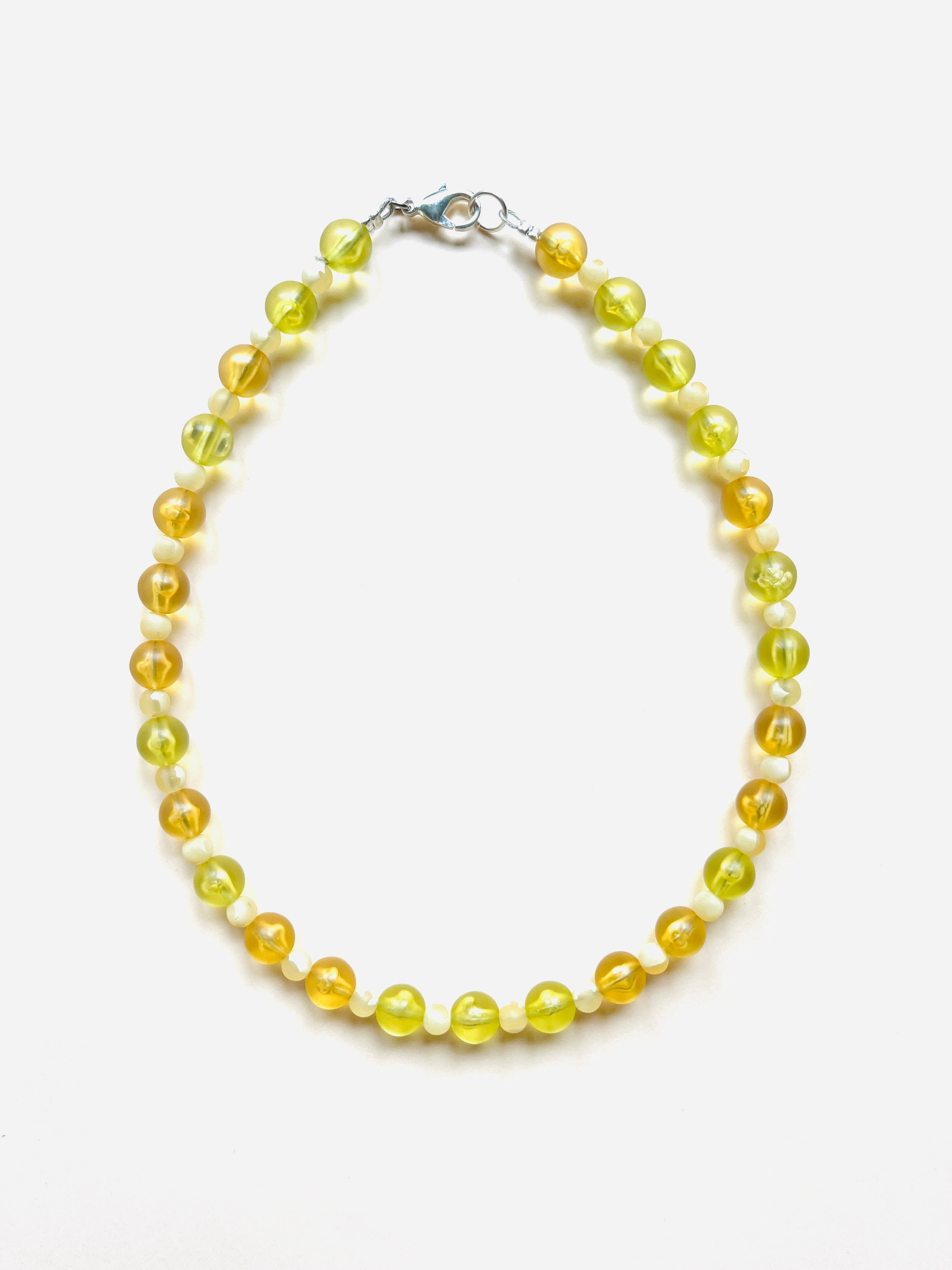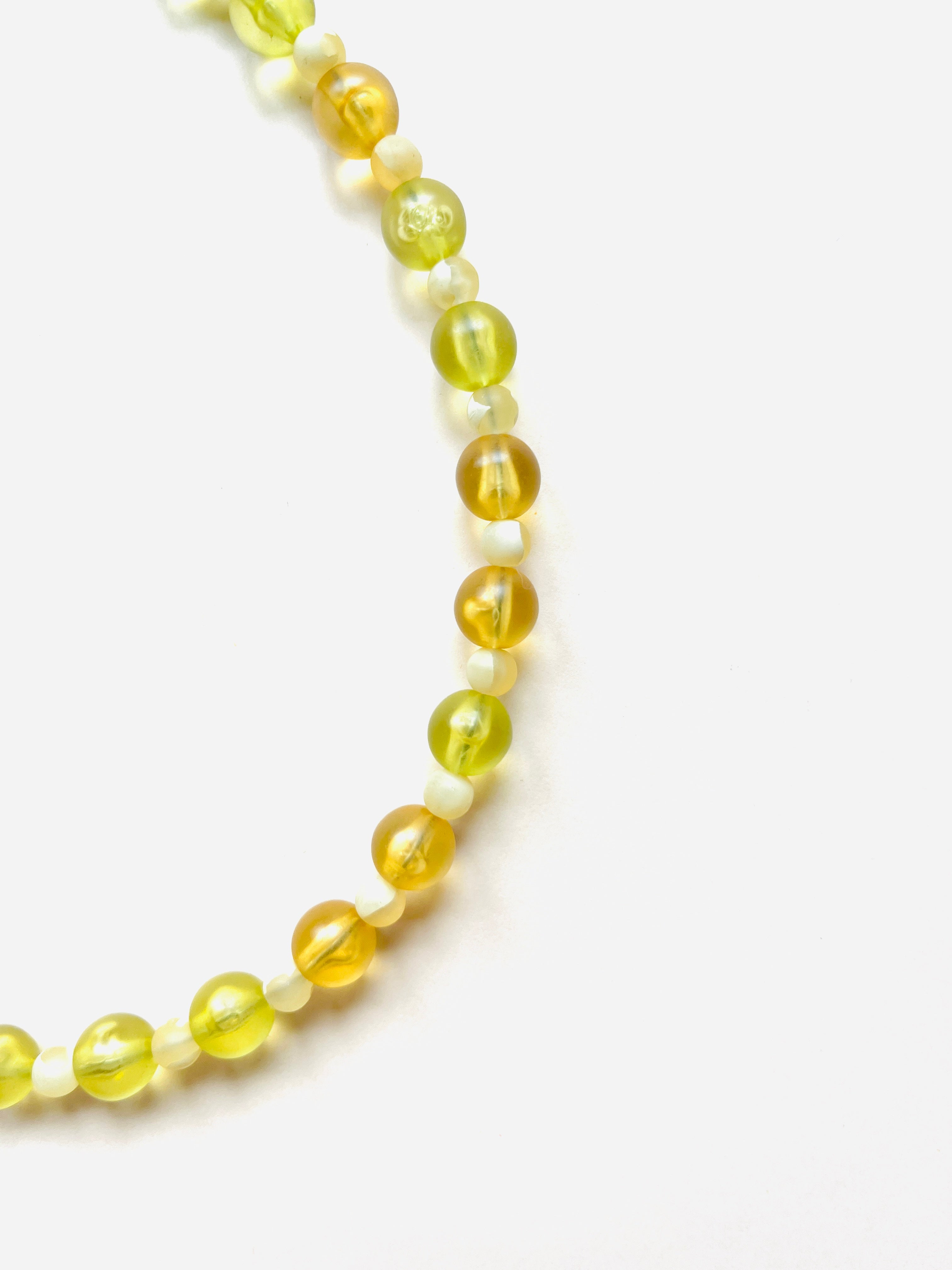Collar vintage original de los años 90. Cierre plata con abalorios en forma redonda en color amarillo, con cierre de gancho.