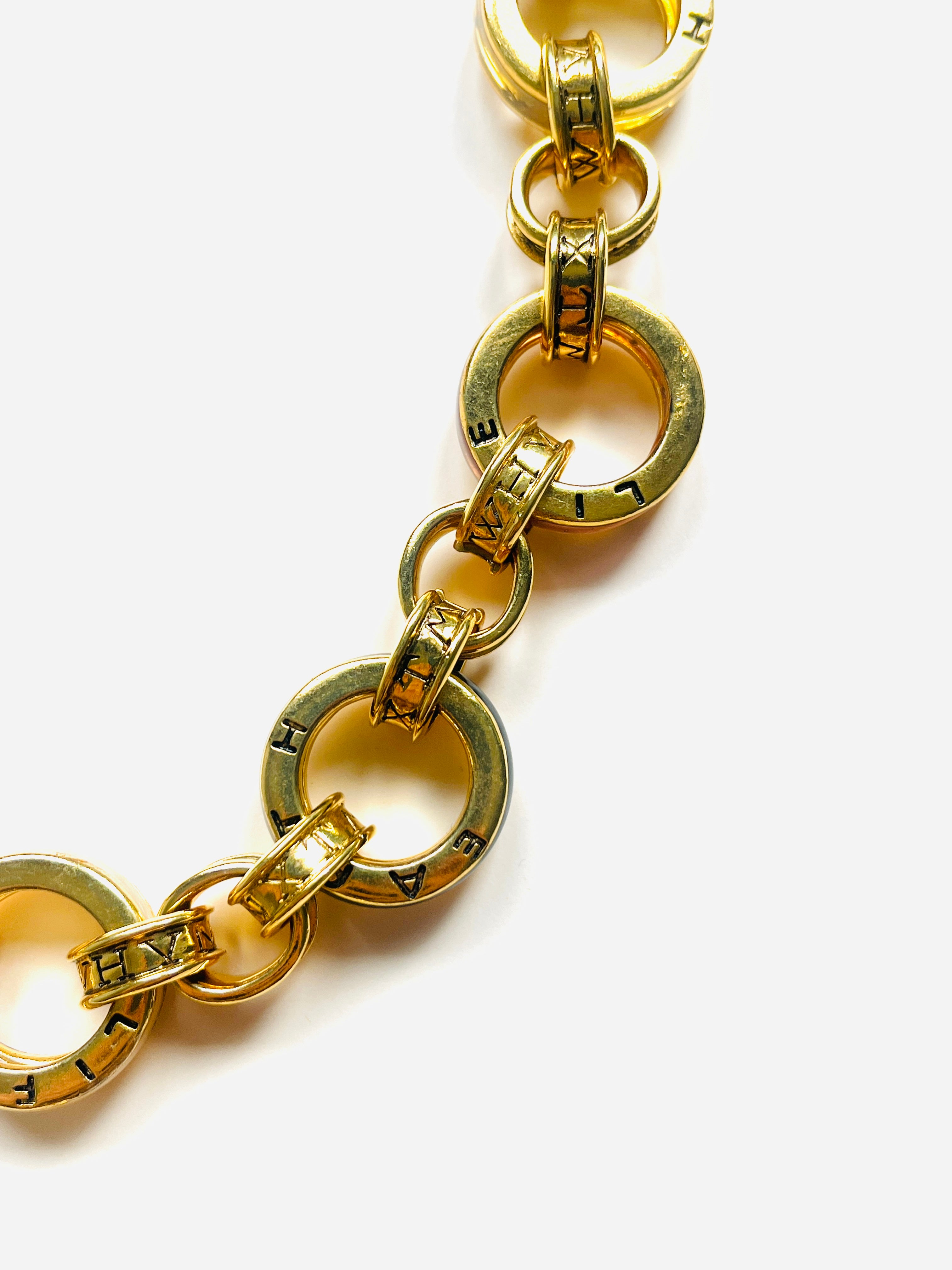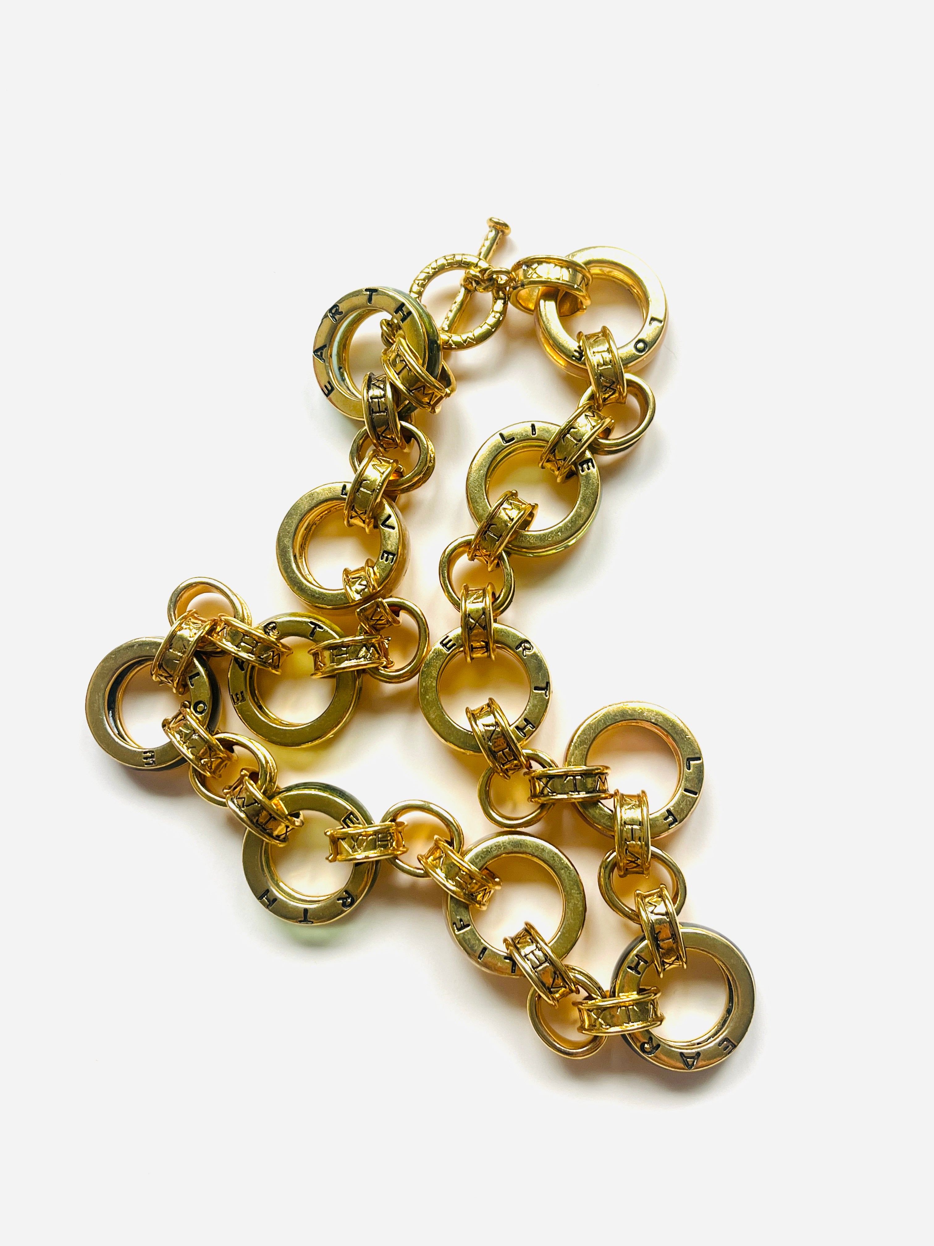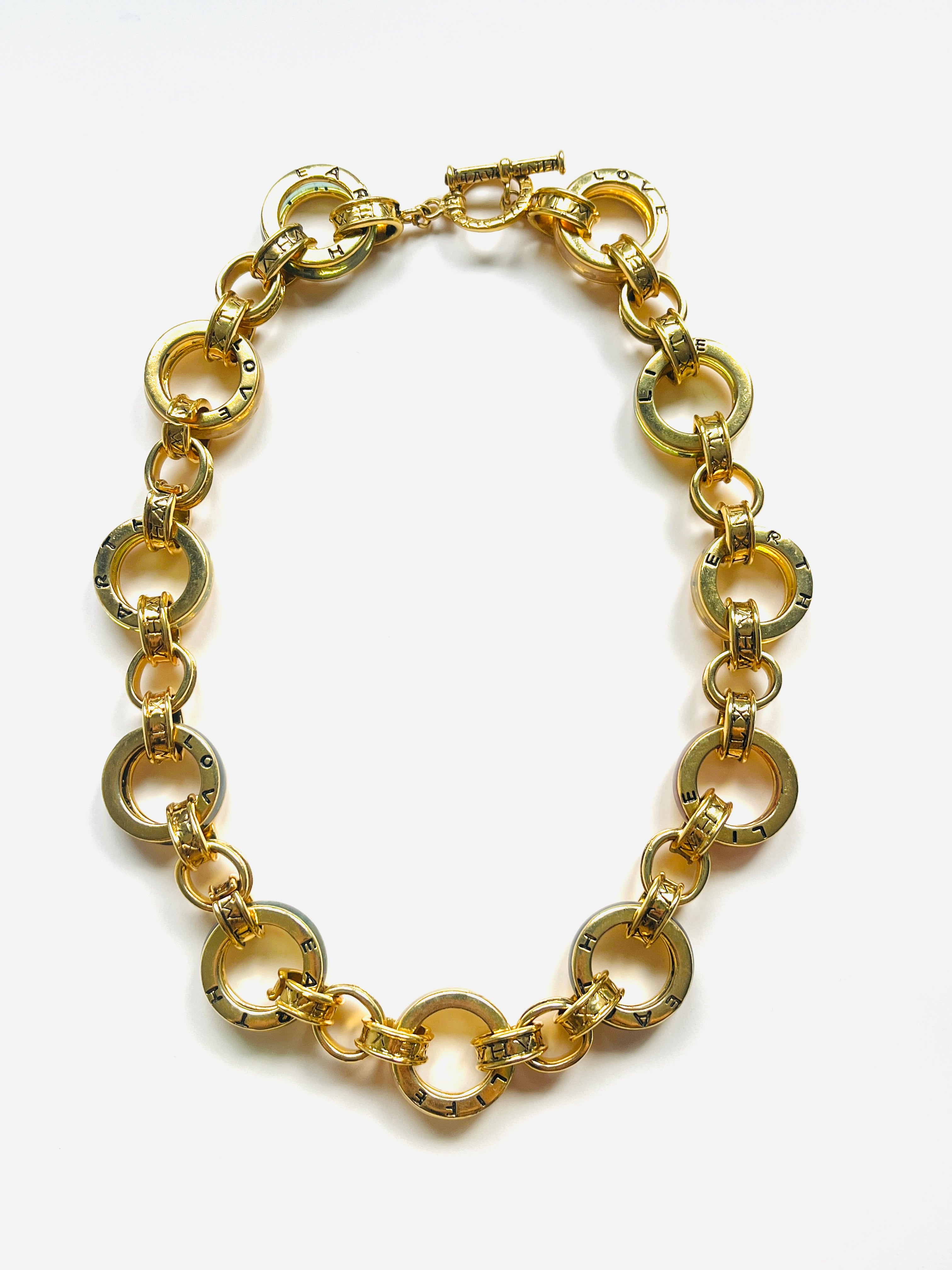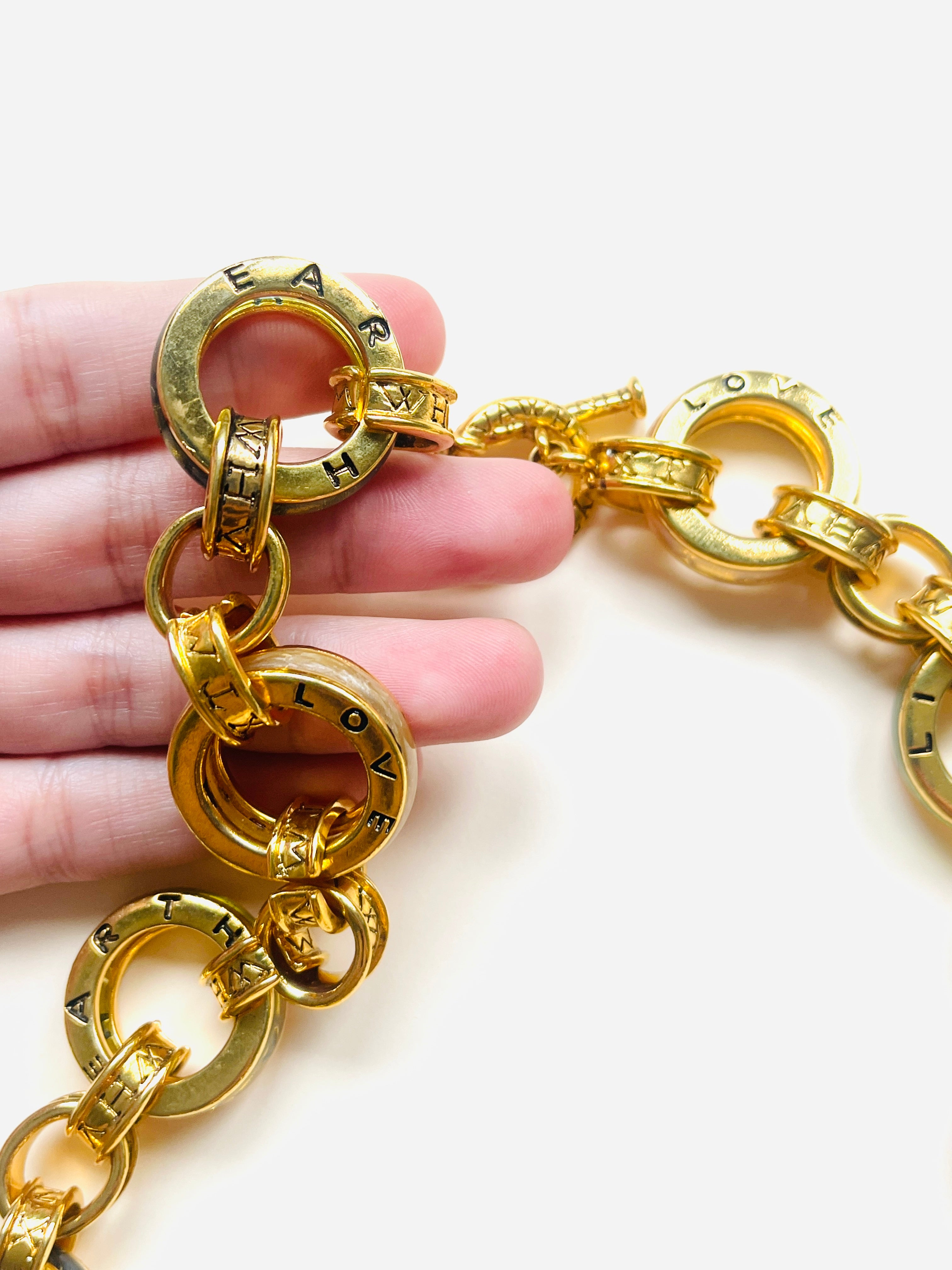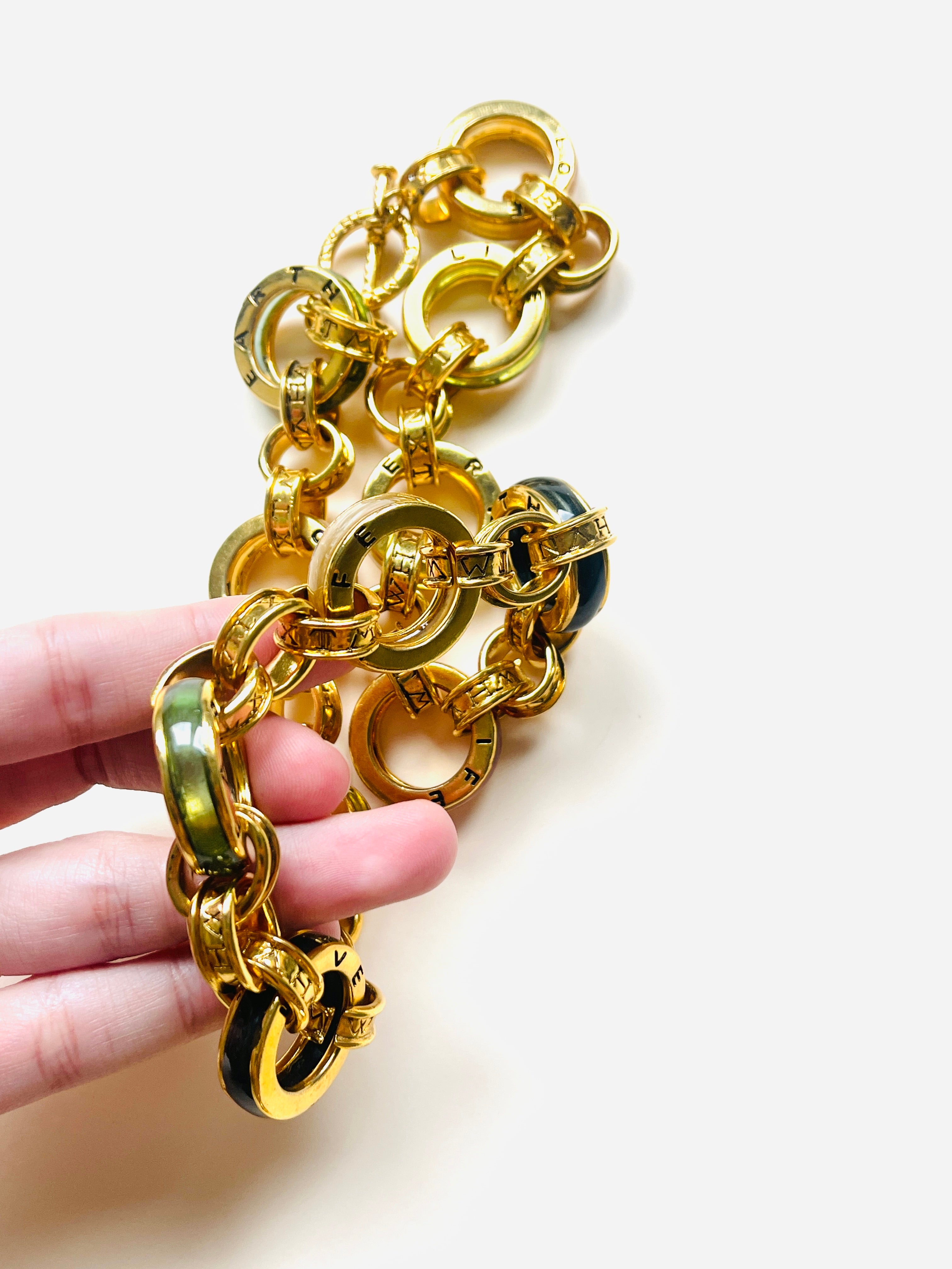 Collar vintage original de los años 90. Base dorada de con cadena dorada con apliques en multicolor.