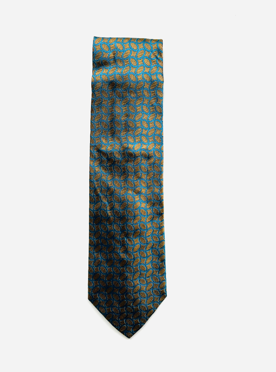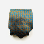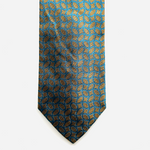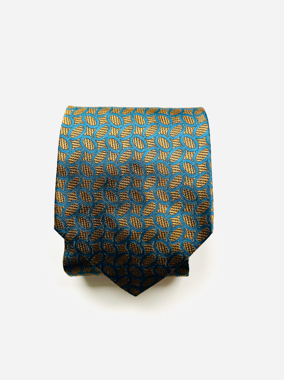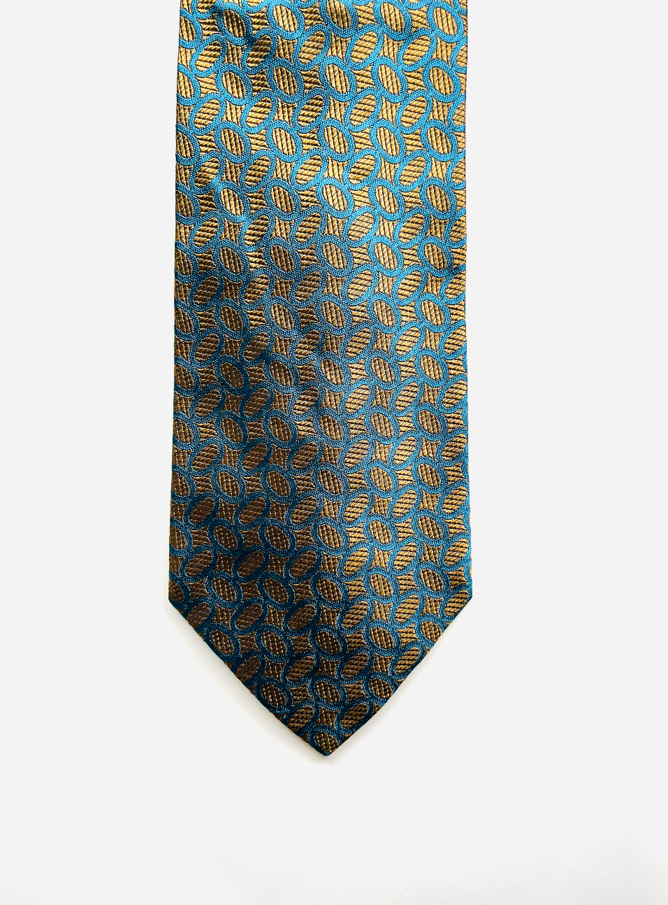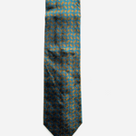 Corbata vintage original de los años 90. Base en color marrón tornasolado con dibujos en azul petróleo.