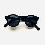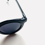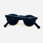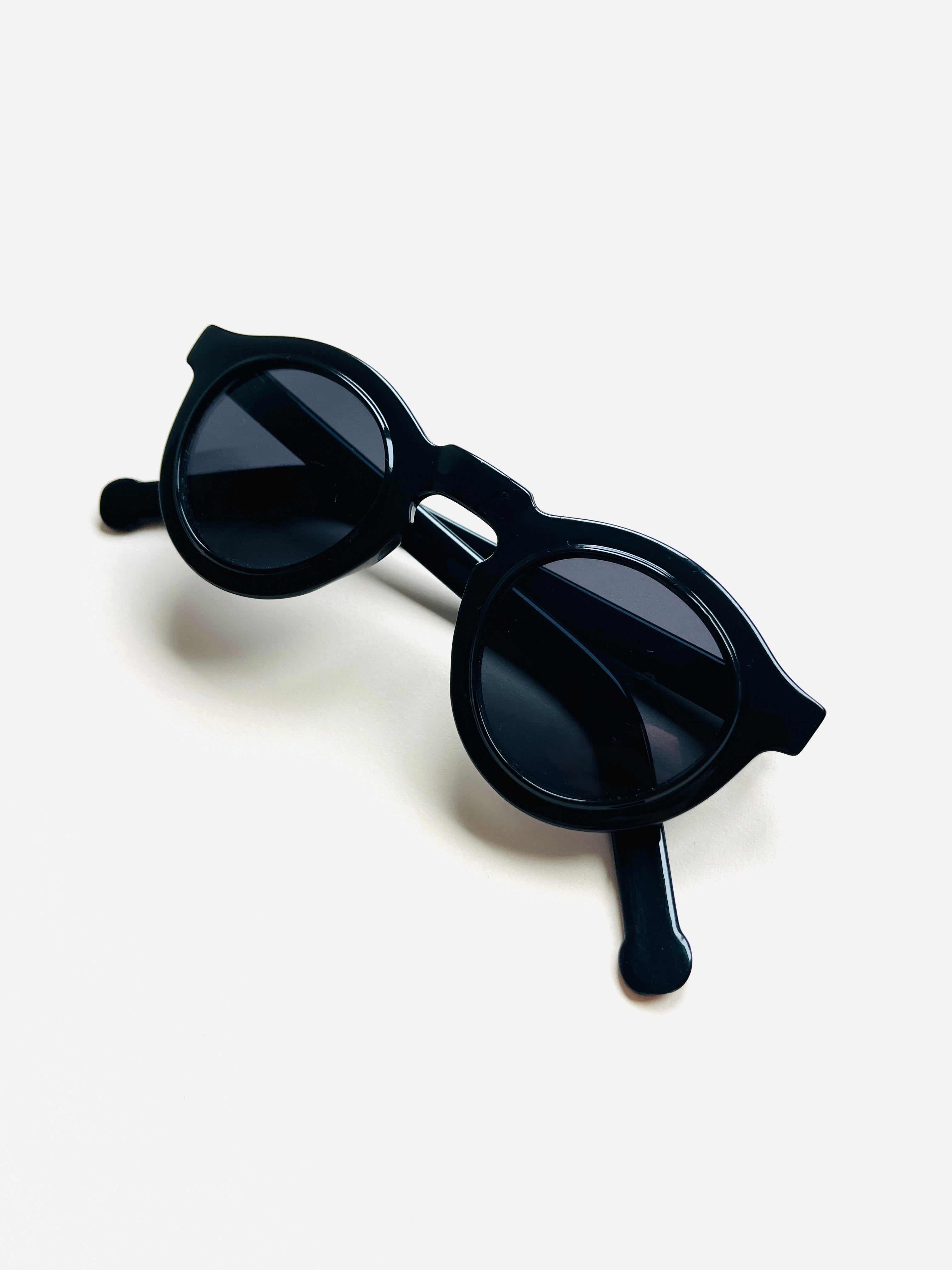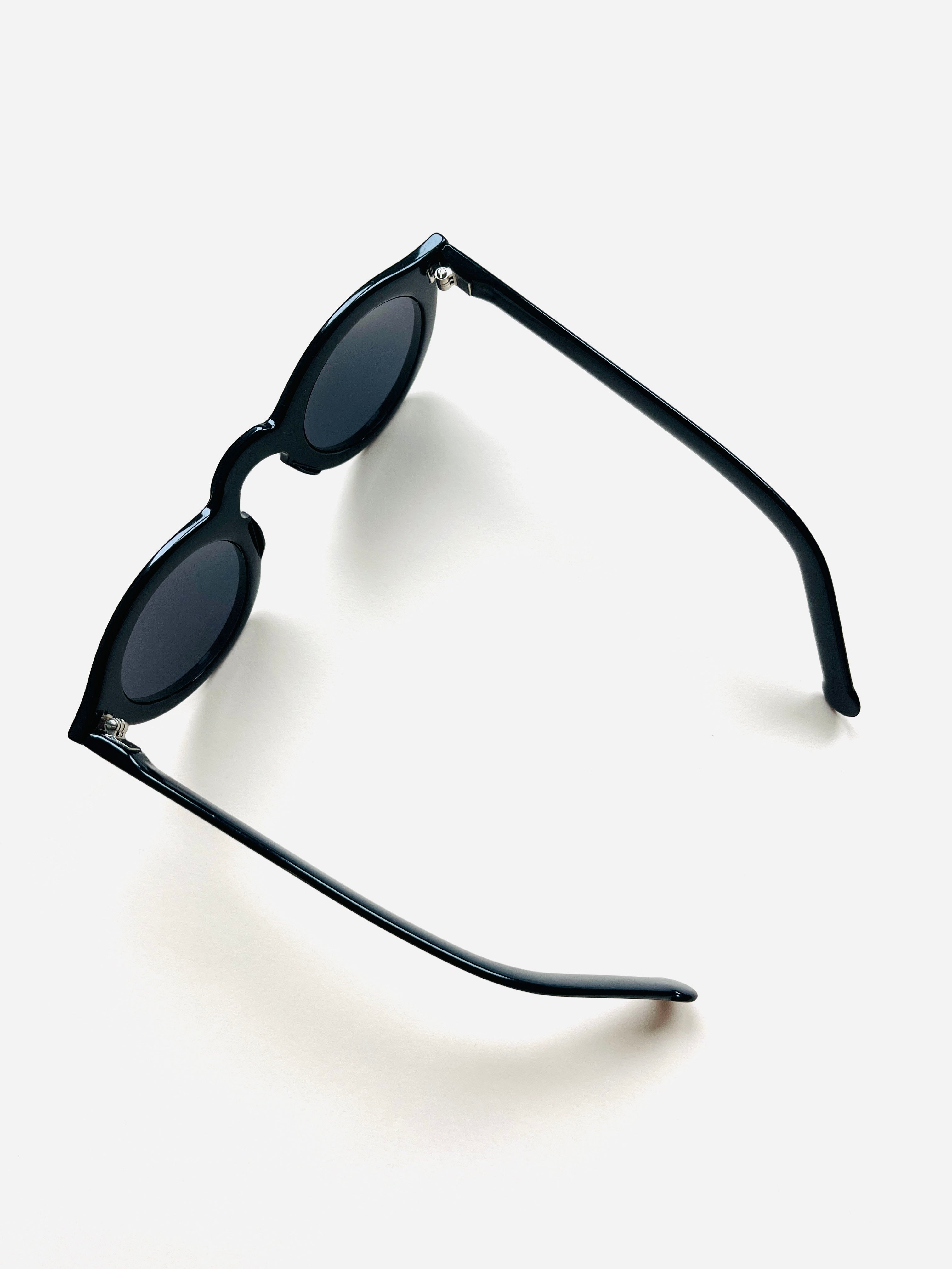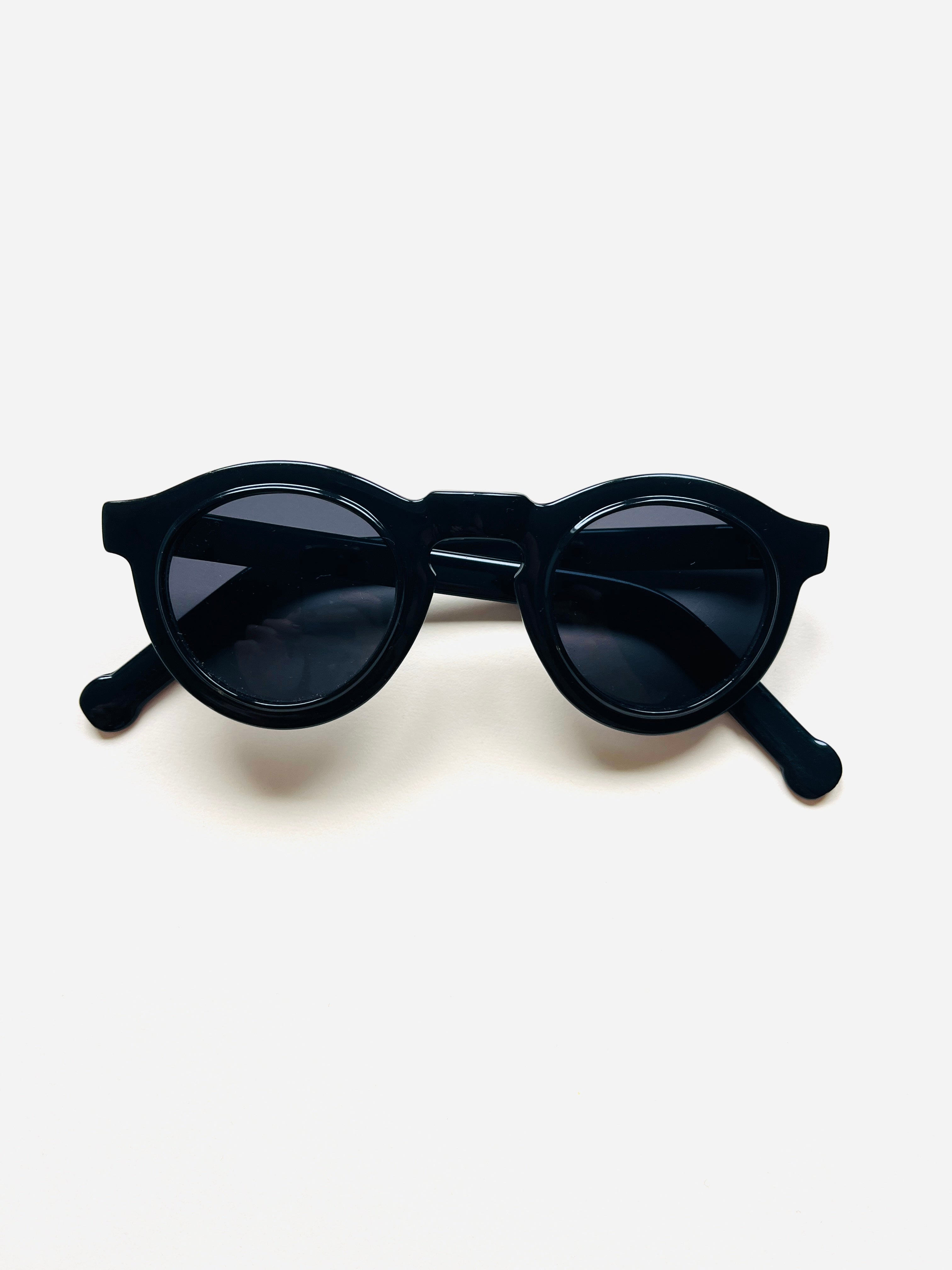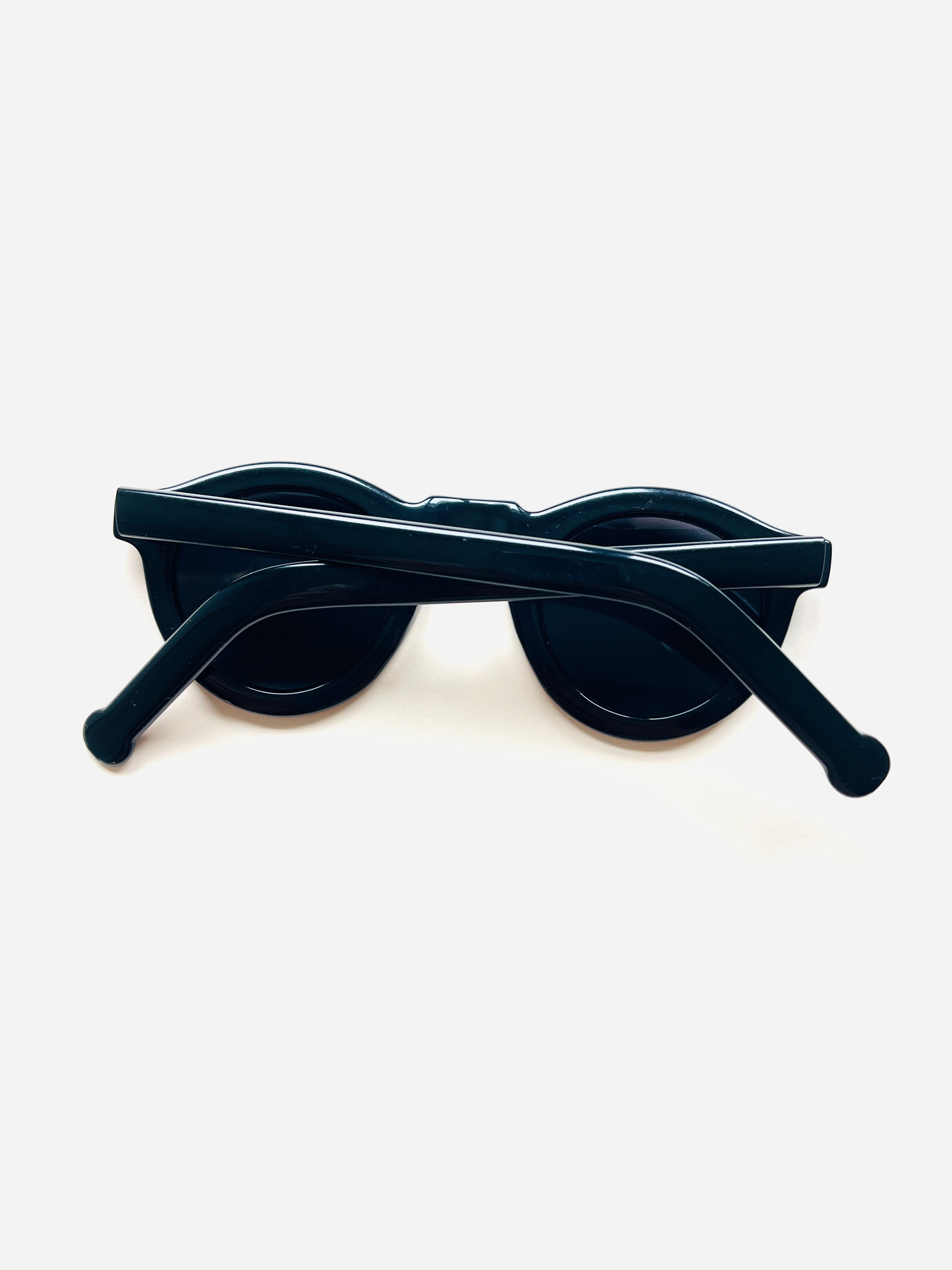 Gafa vintage unisex original de los años 90 de primera mano. Montura negra con forma redonda y cristal oscuro.