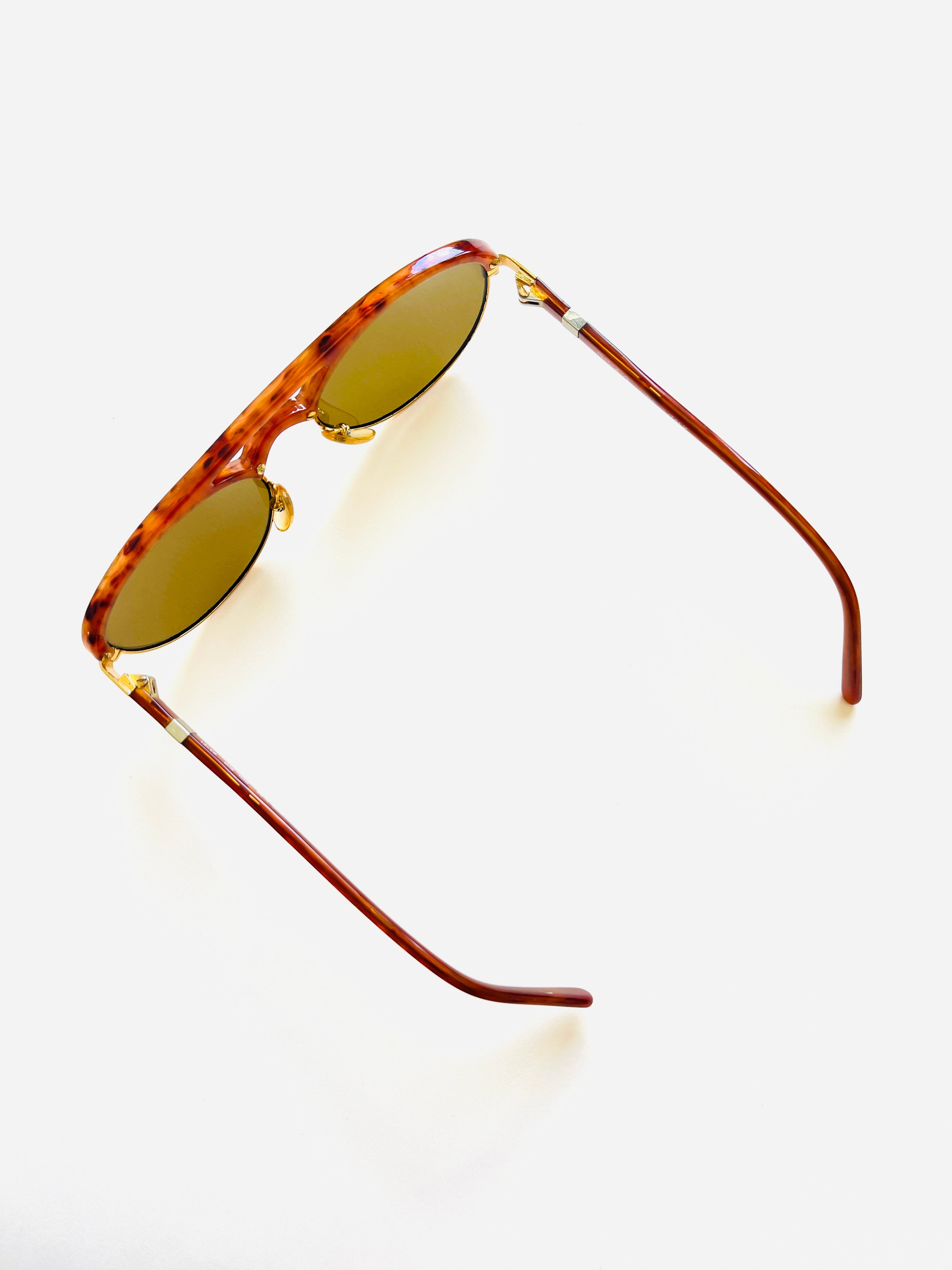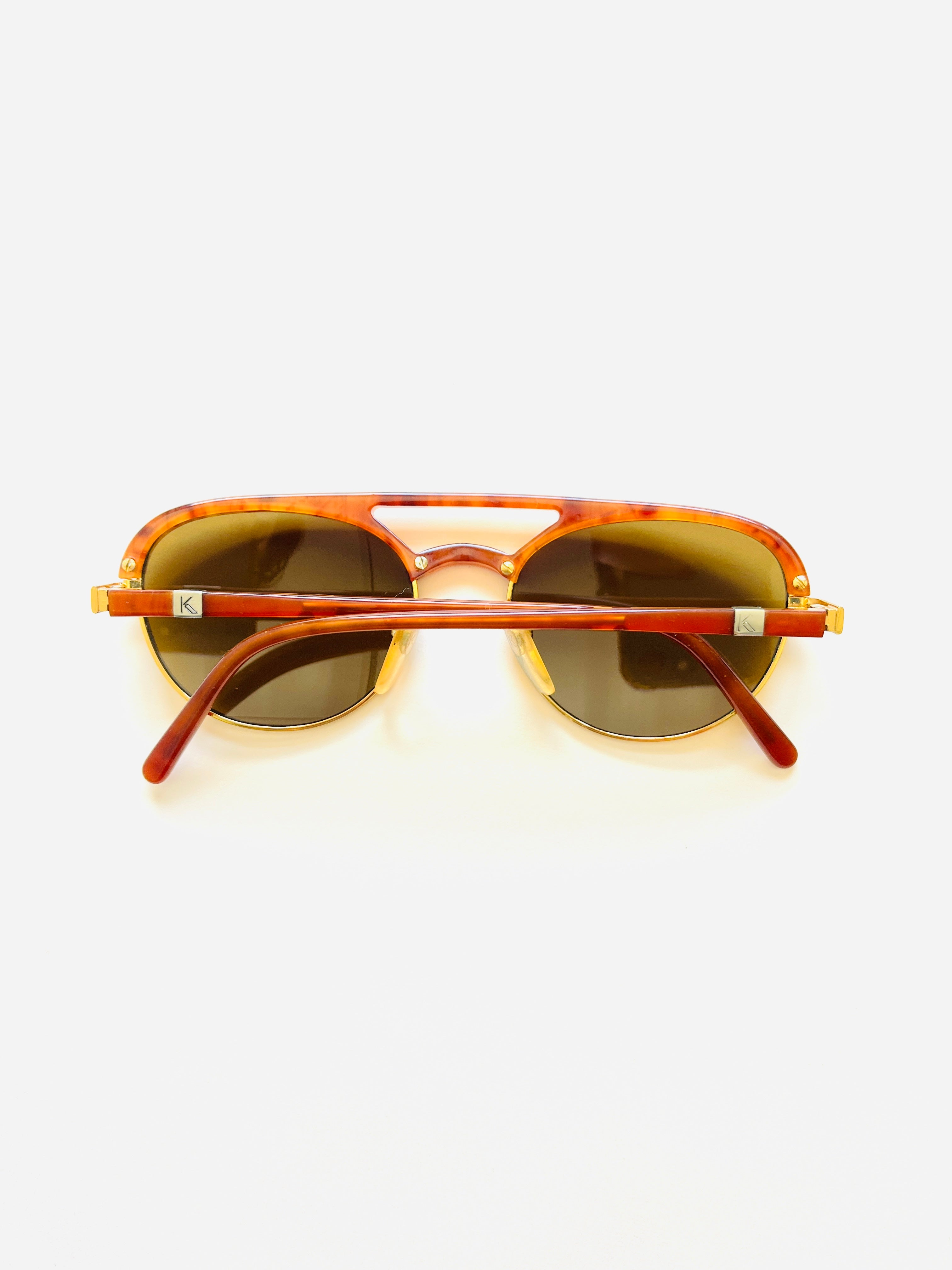 Gafa vintage unisex original de los años 90 de primera mano de la marca Krizia. Montura marrón y cristal marrón.
