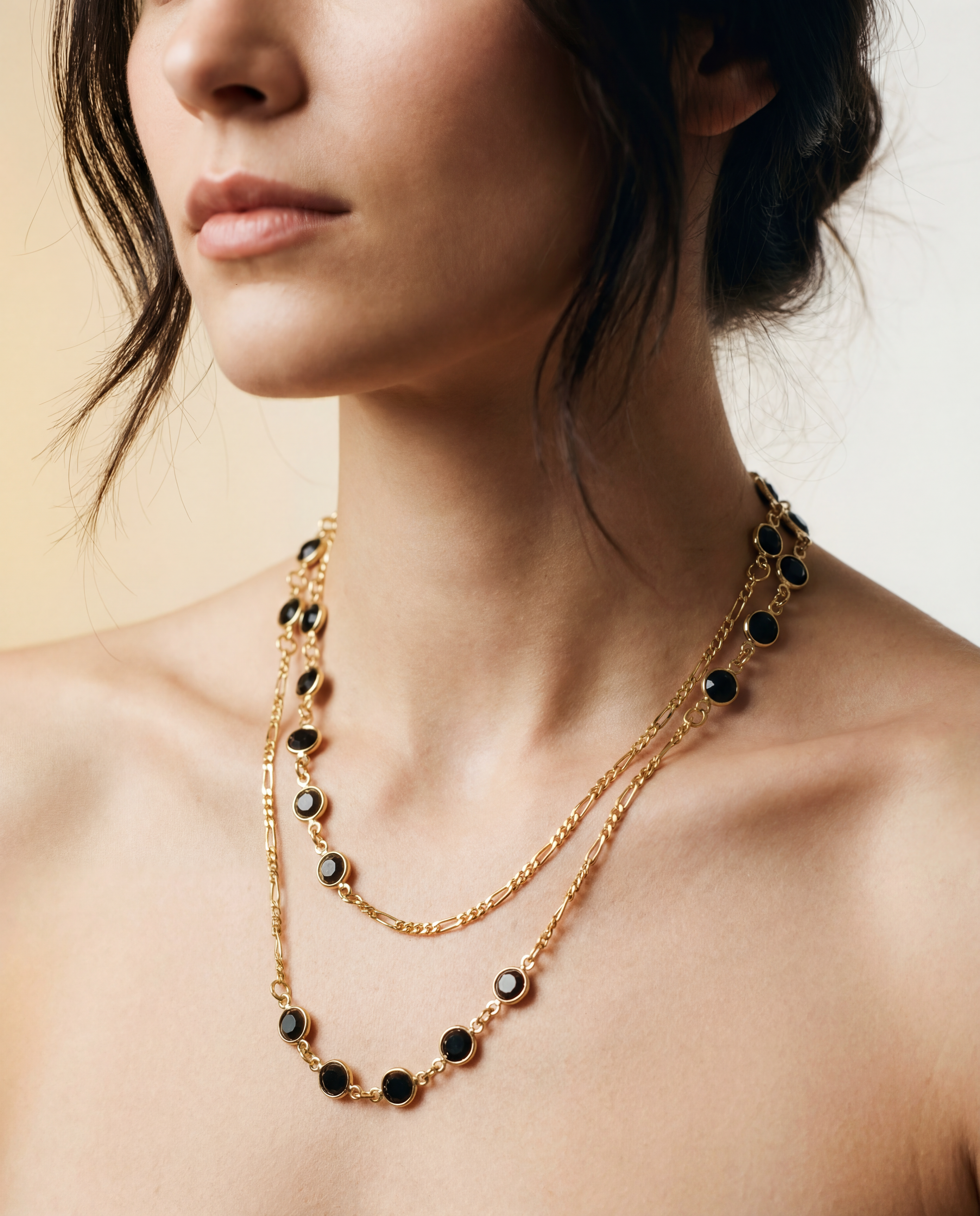 Materiales: chapado en oro 22k de alta calidad y cristal negro