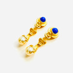 Materiales: chapado en oro mate, cristal azul y perla blanca