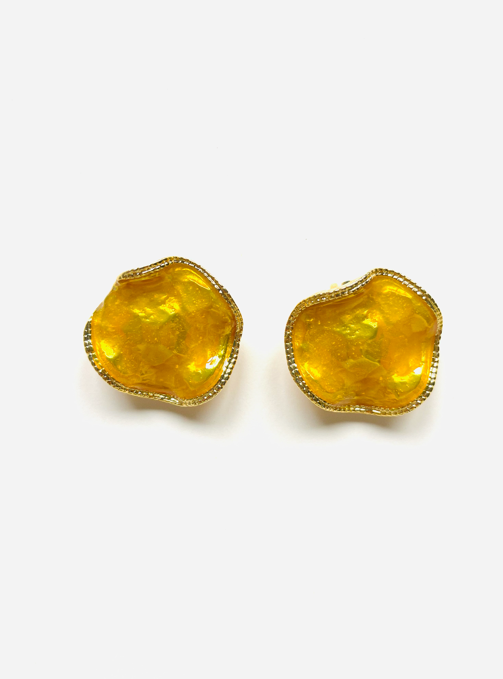 Pendientes vintage originales de los años 90 con cierre de pinza. Base en forma redonda con esmaltado en color amarillo.