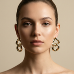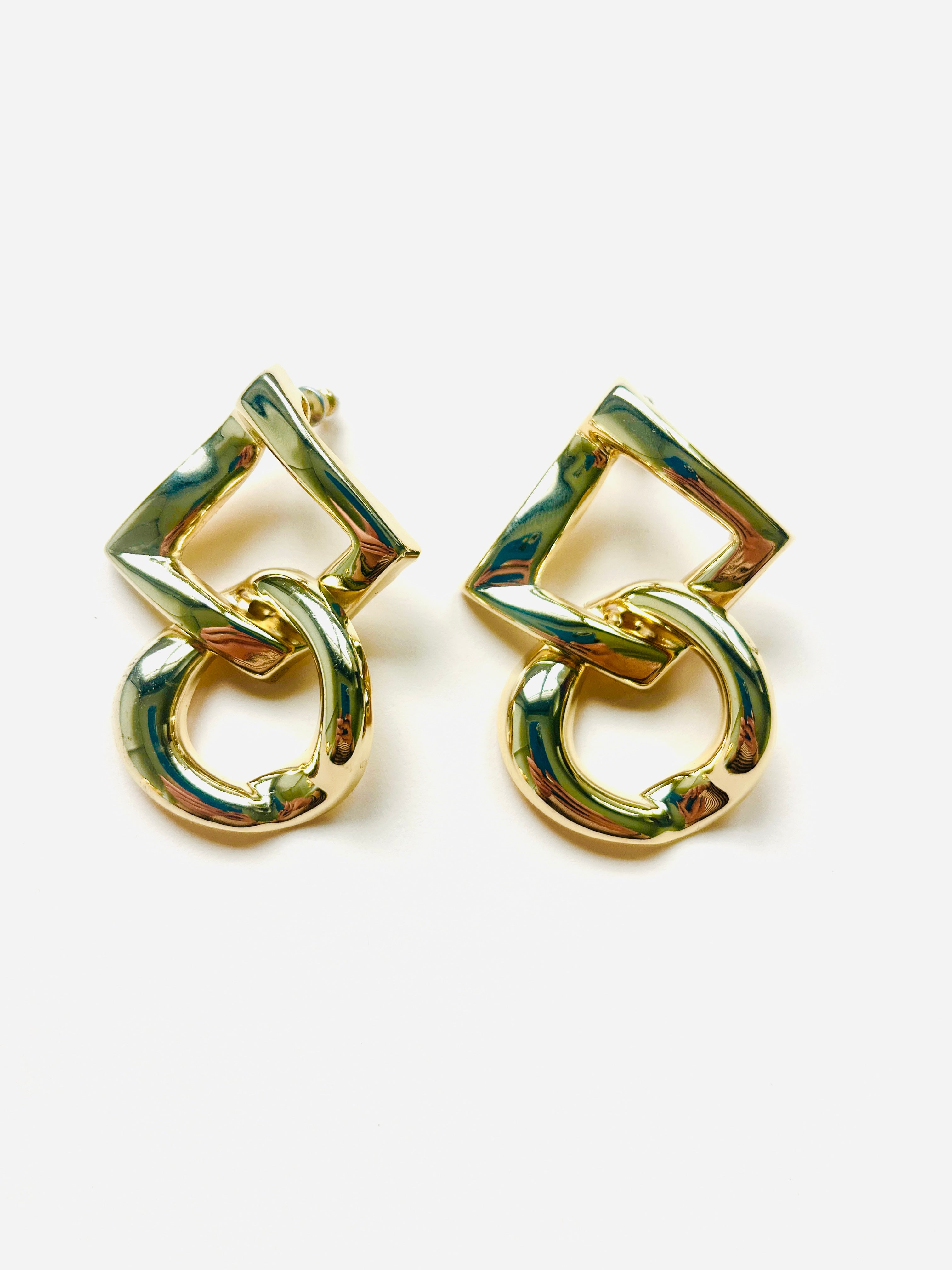 Pendientes vintage originales de los años 90. Cadena dorada con cierre de gancho en formas cuadrada y redonda.