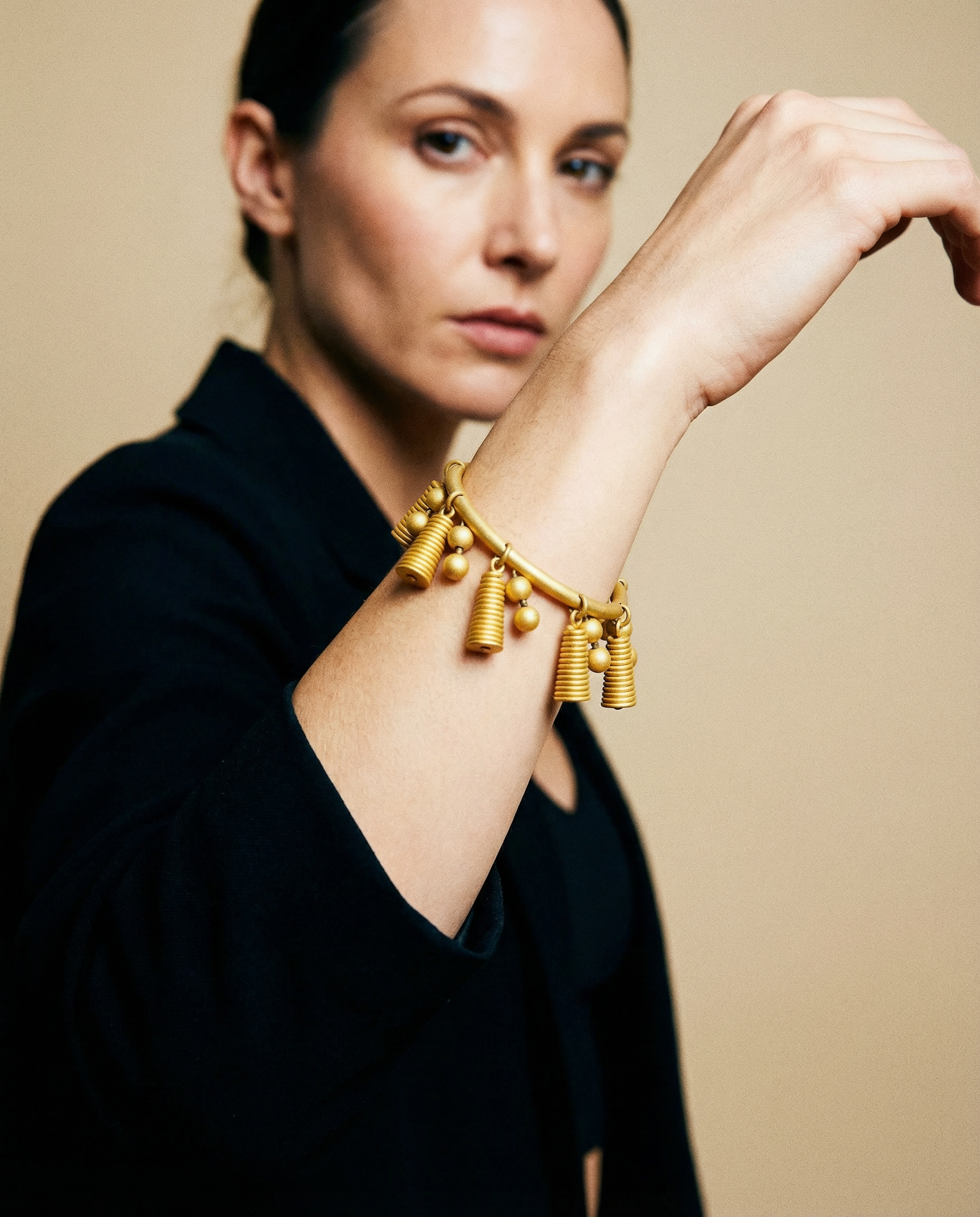 Pulsera vintage de estructura rígida original de los años 90 de la marca Afra Bijoux (Made in Italy) de base dorada mate.