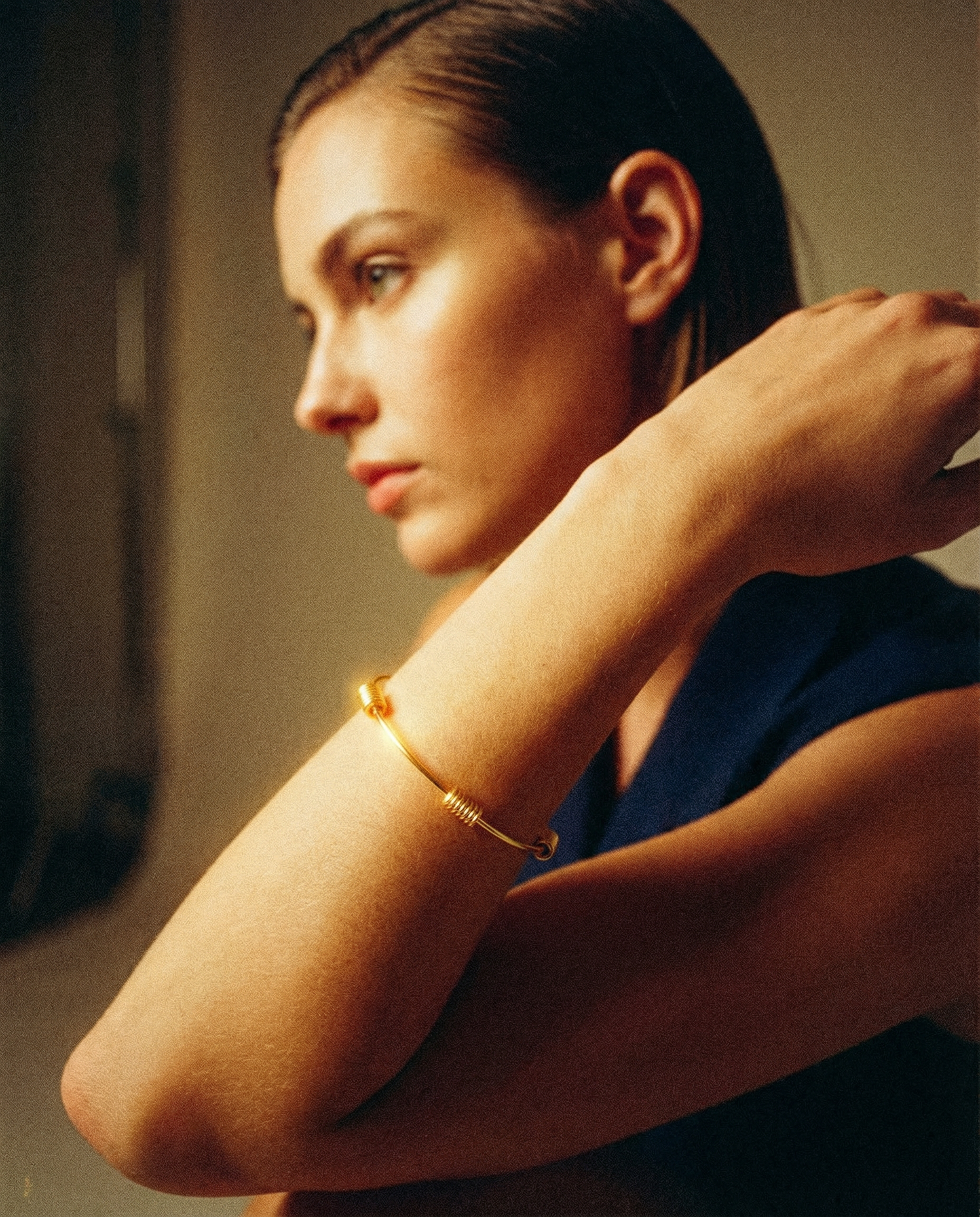 Pulsera vintage original de los años 90. Base dorada rígida y fina con detalles de nudos.