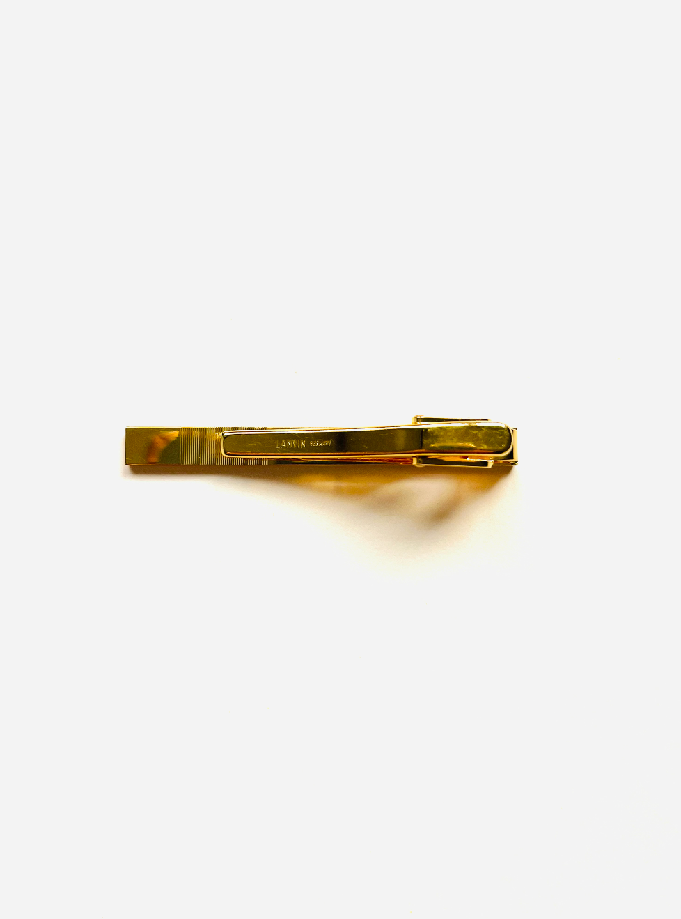 Alfiler de corbata vintage años 90, original de la marca Lanvin. Materiales: Chapado en oro con cierre de pinza. Incluye etiqueta original de la marca.