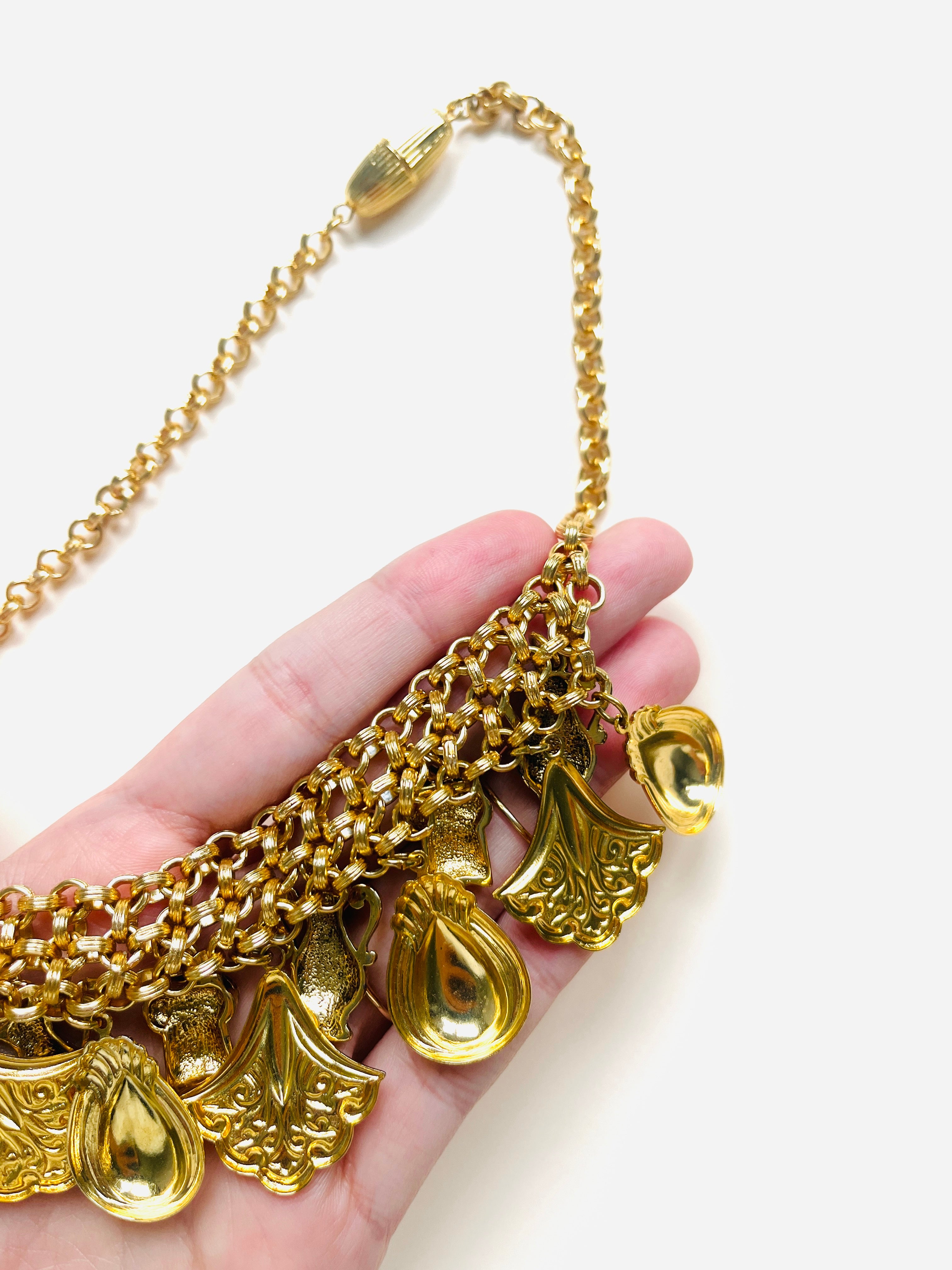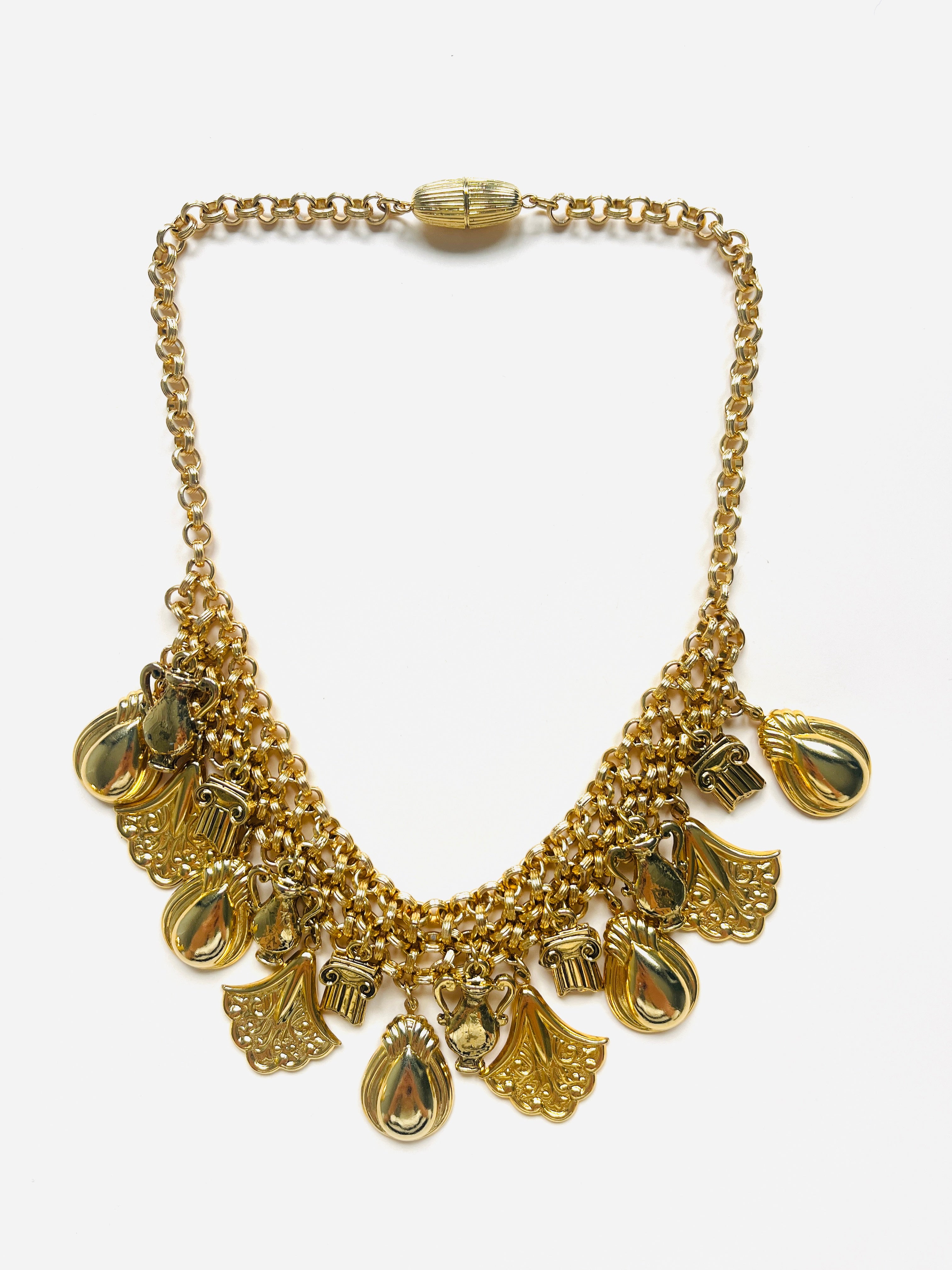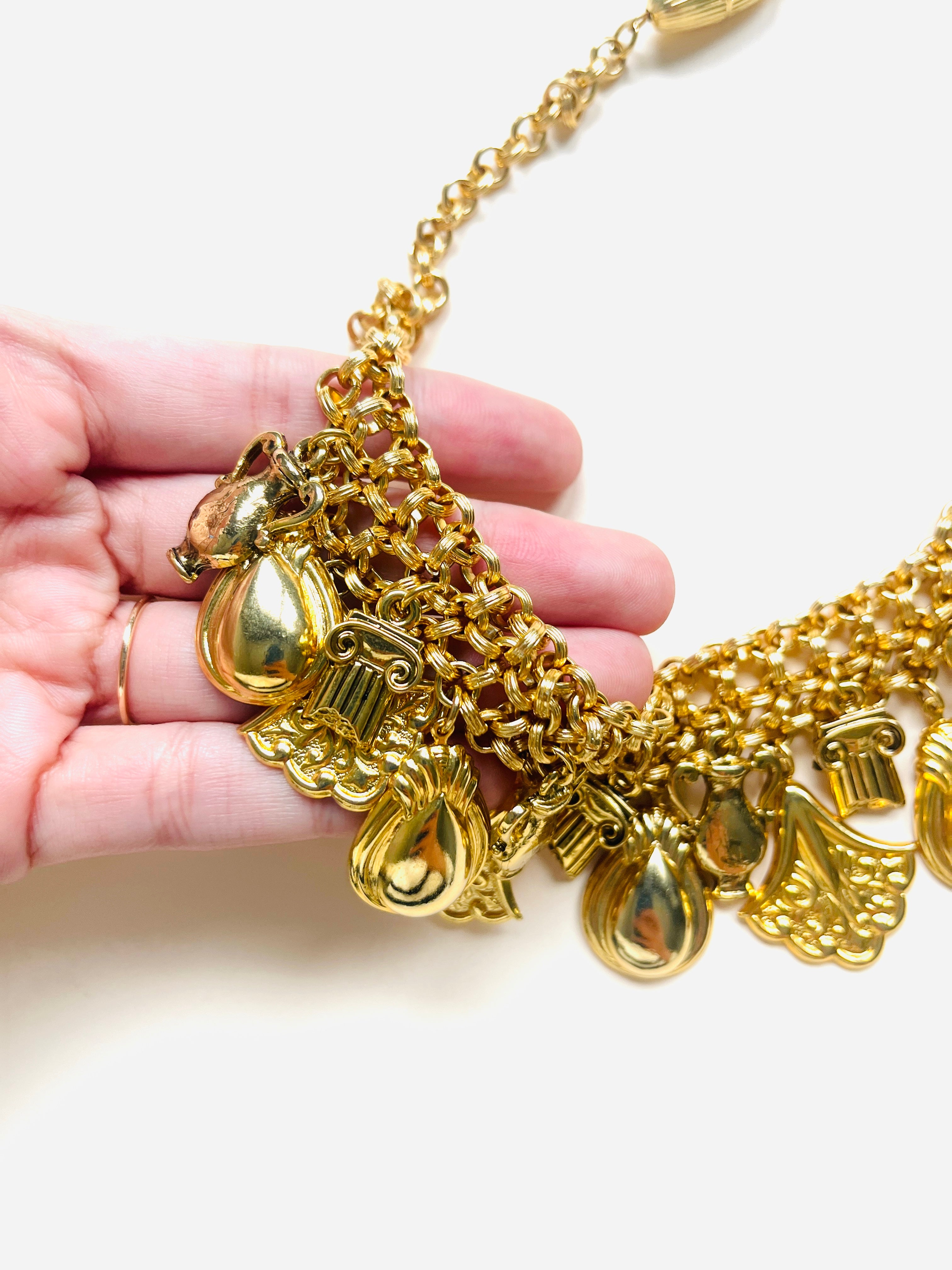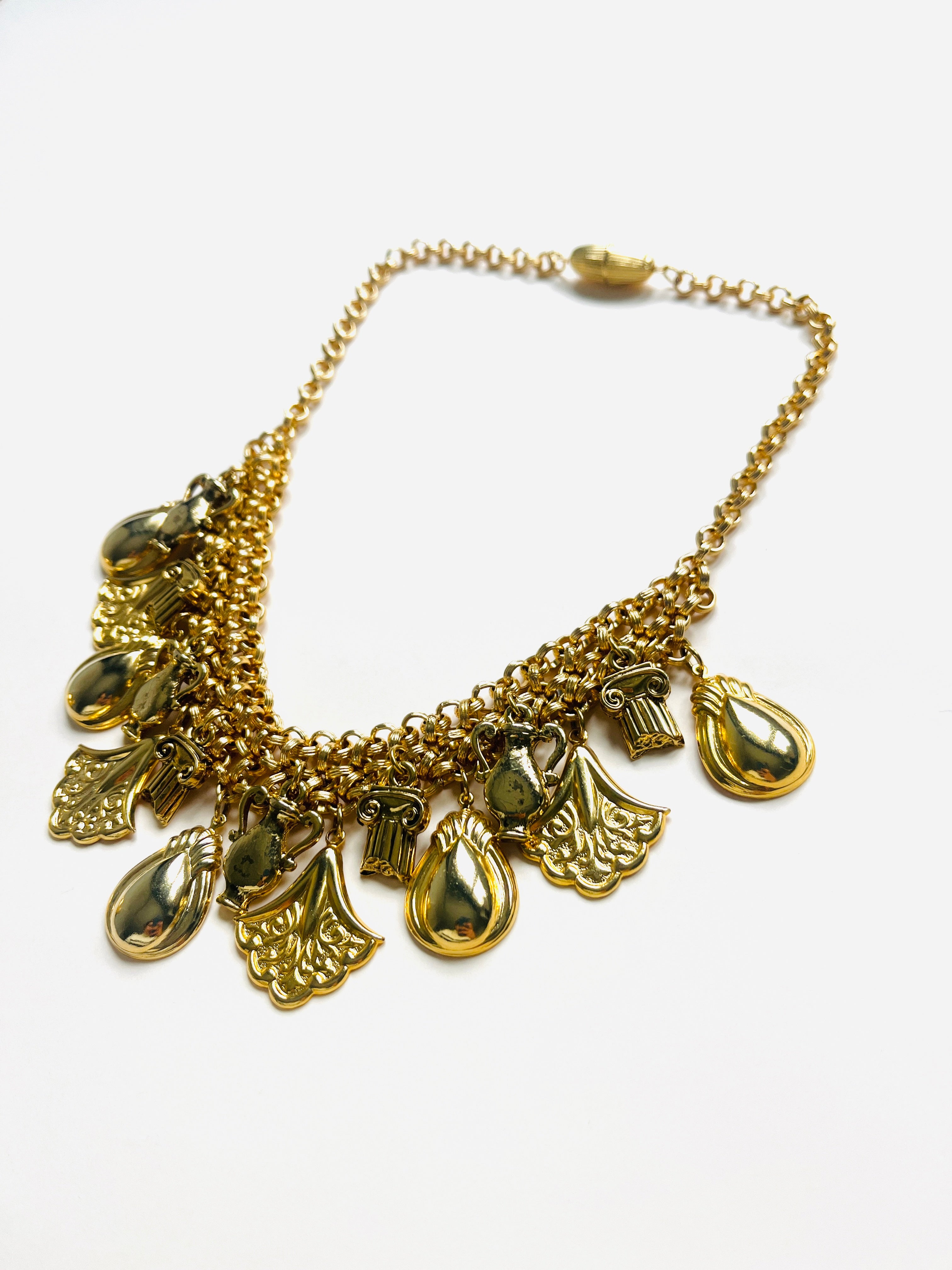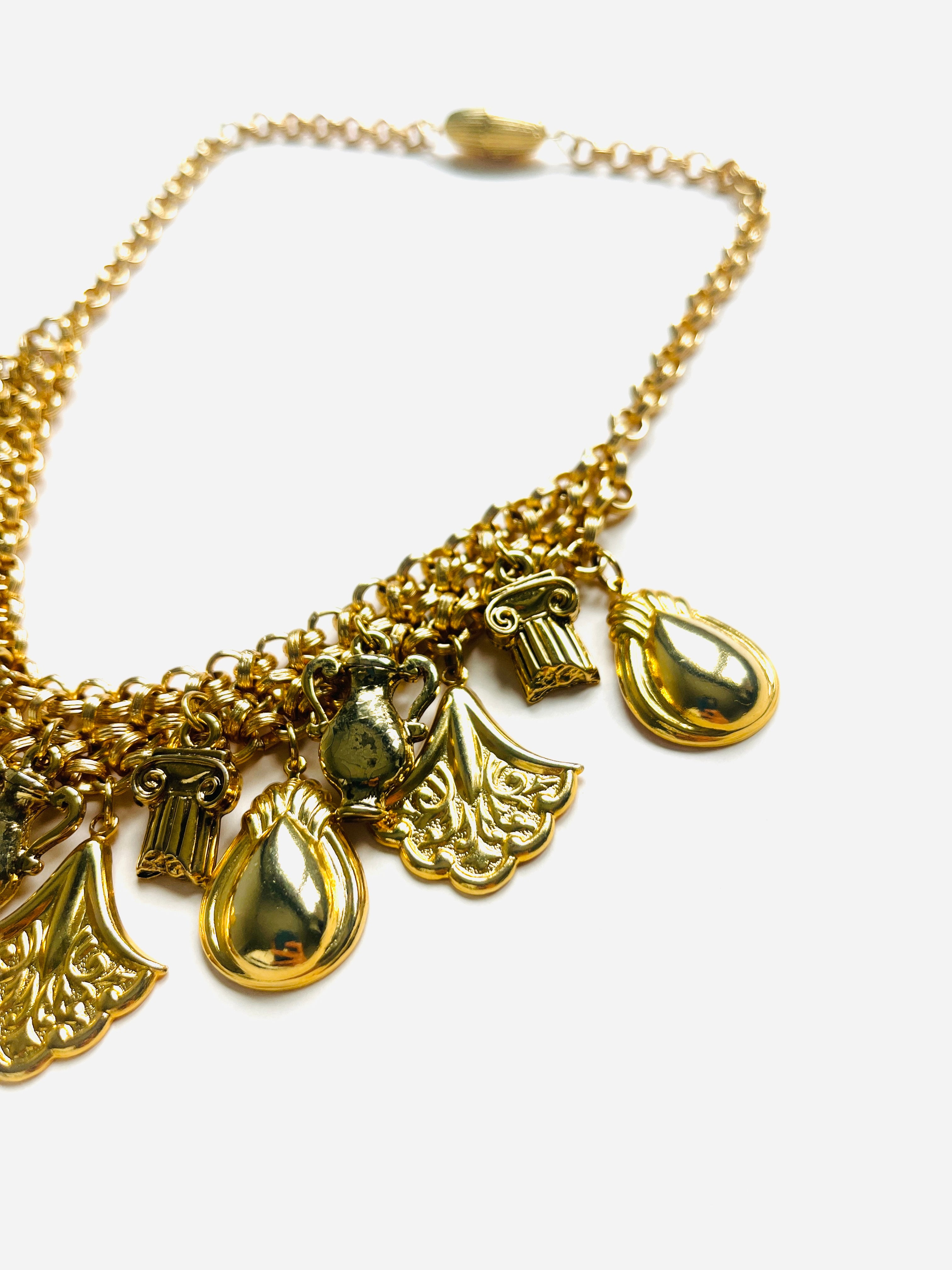Collar vintage original de los años 90. Base dorada en cadena y colgante con diferentes dibujos.