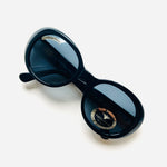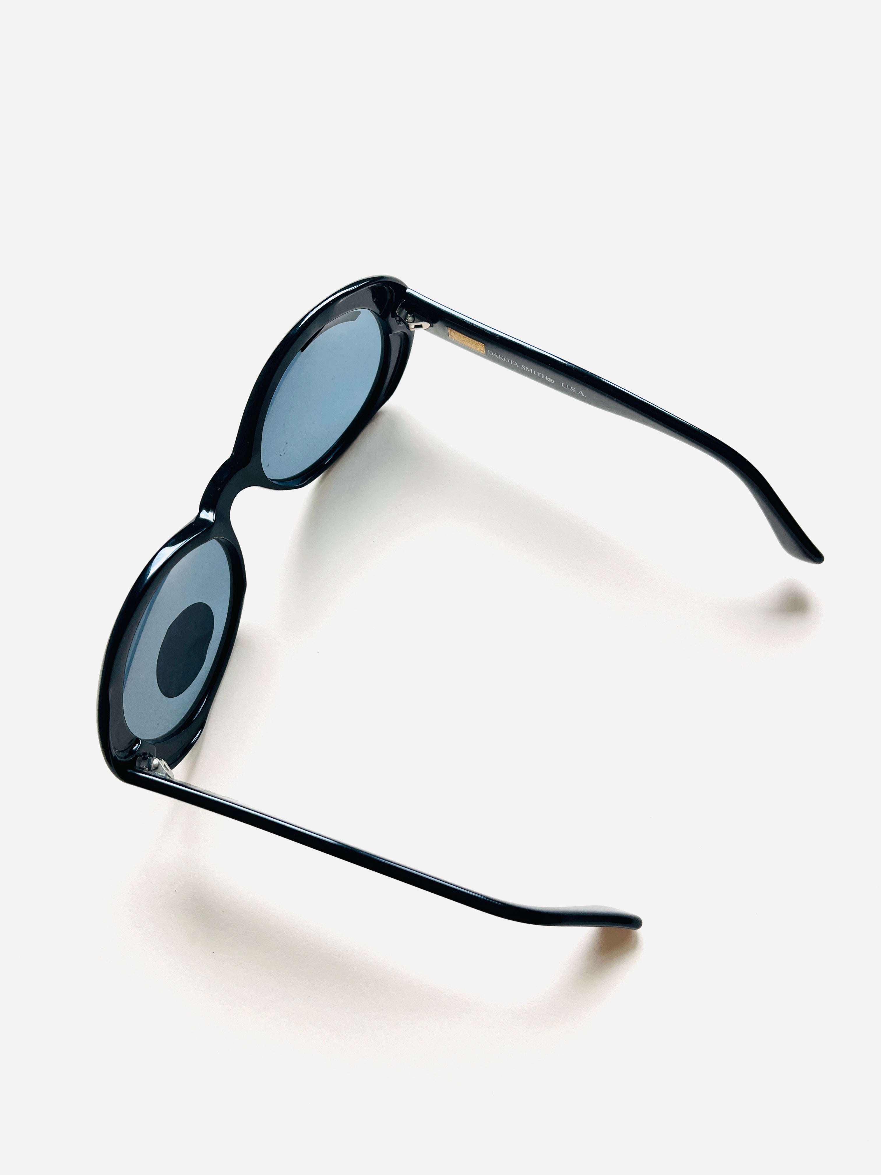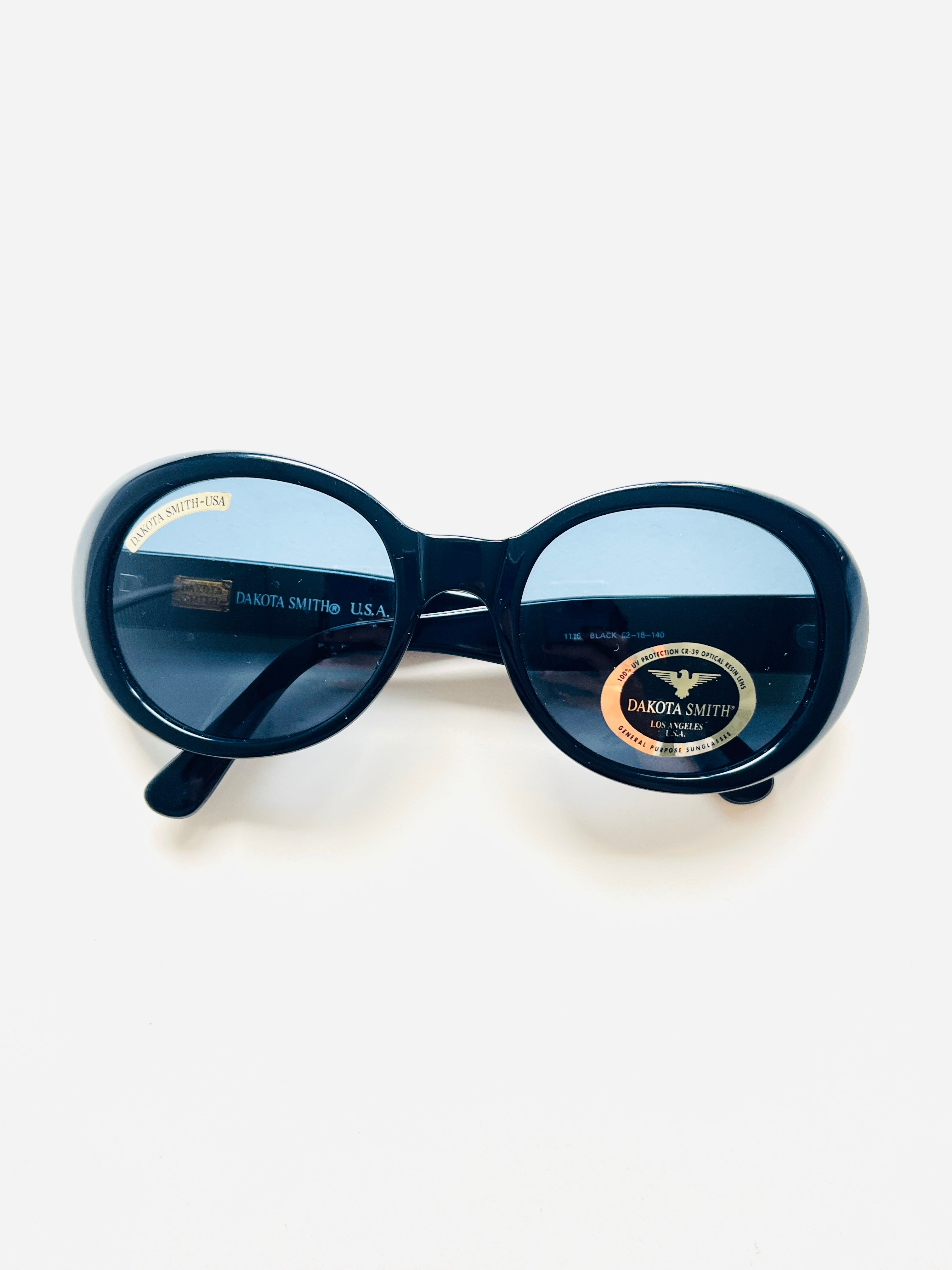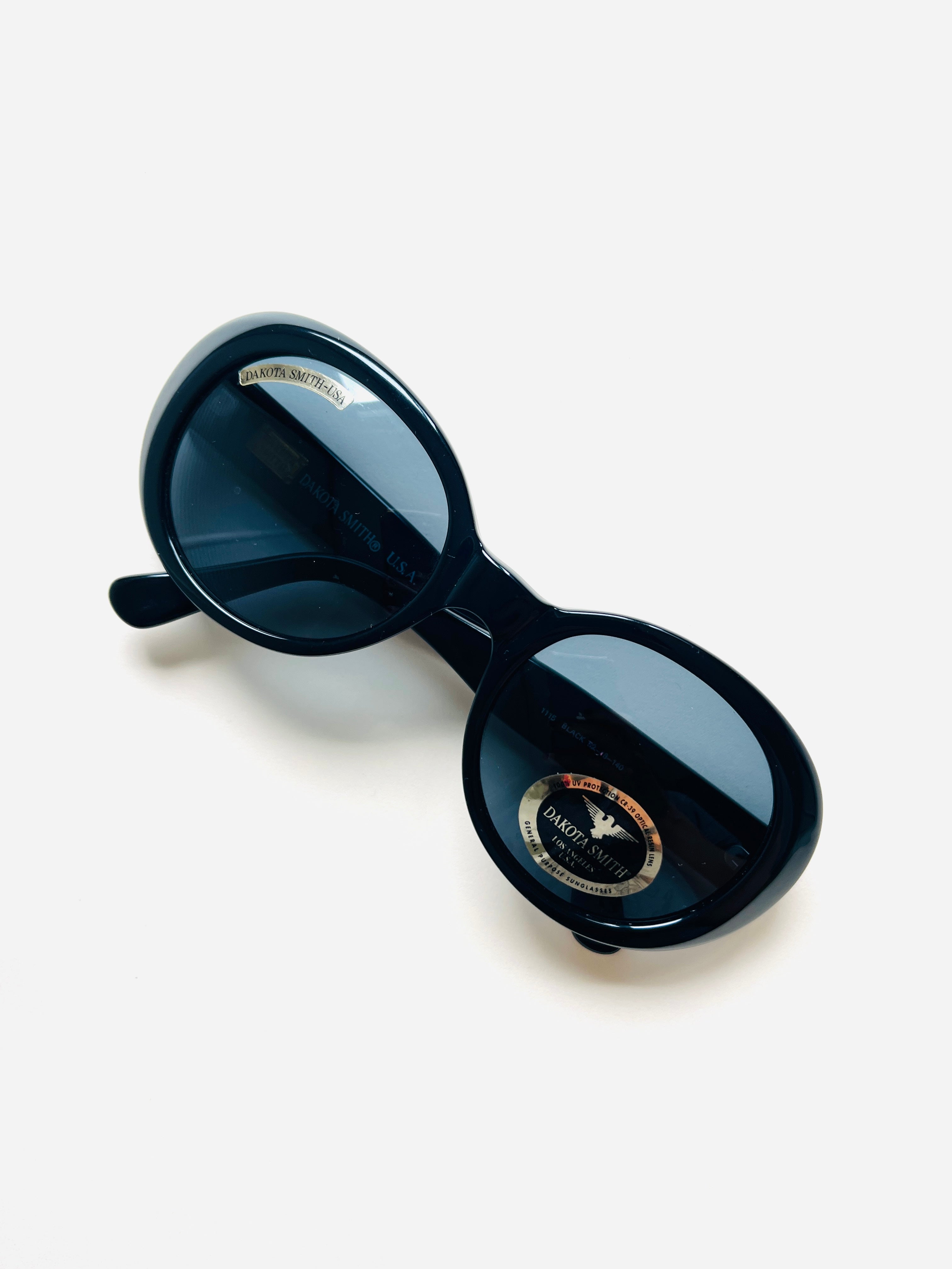 Gafa vintage unisex original de los años 90 de primera mano de la marca Dakota Smith U.S.A. Montura negra con forma redonda y cristal oscuro.
