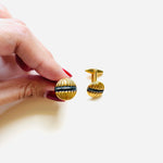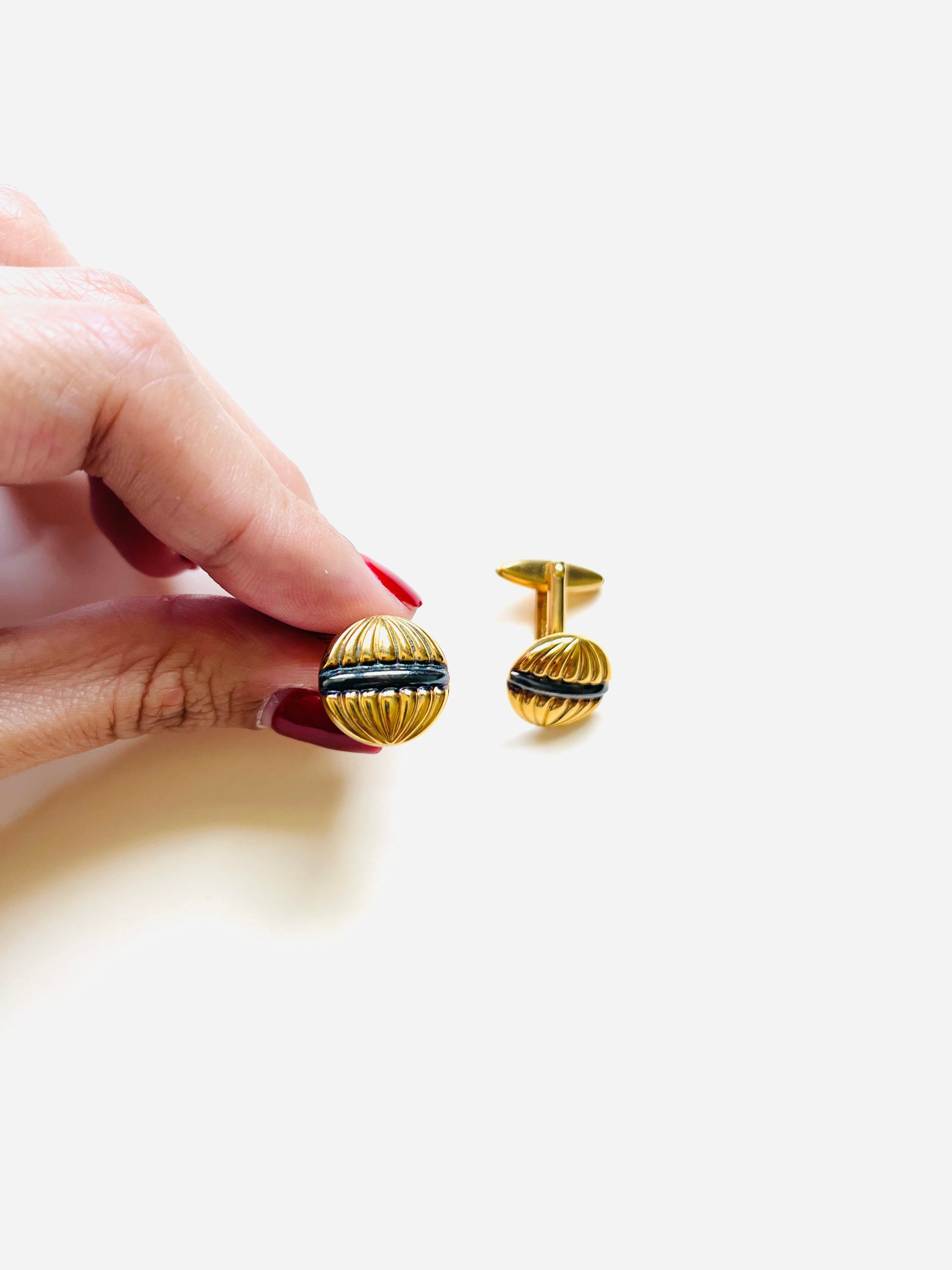 Gemelos vintage originales de los años 90 de la marca Lanvin. Base redonda en dorado y detalle central en plata. Incluye etiqueta original de la marca.