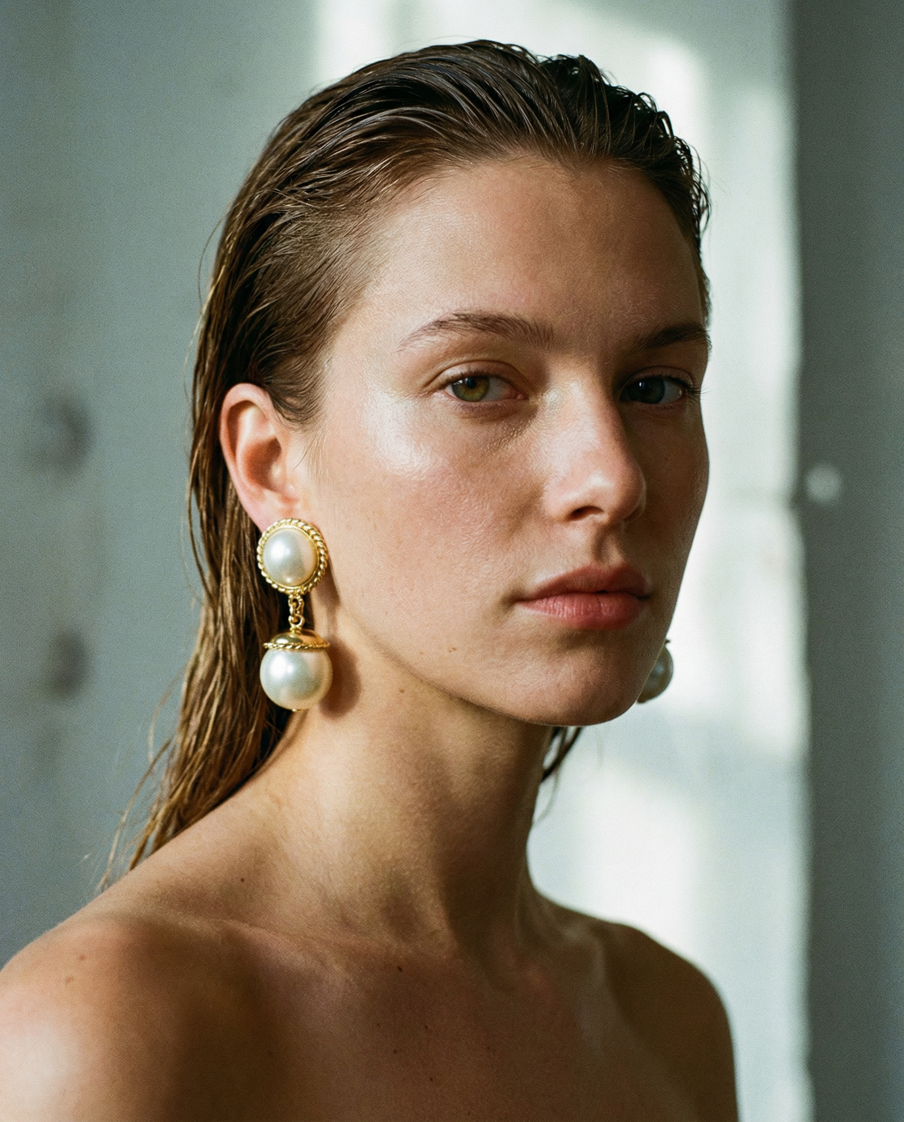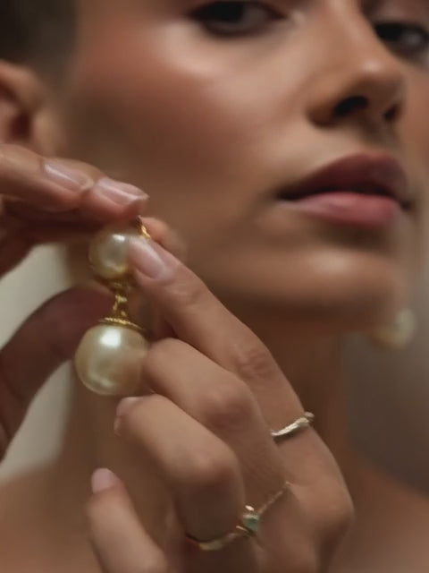 Maxi pendientes vintage originales de los años 80 con cierre de clip. Base redonda y colgante de dos perlas blancas en forma de gota.