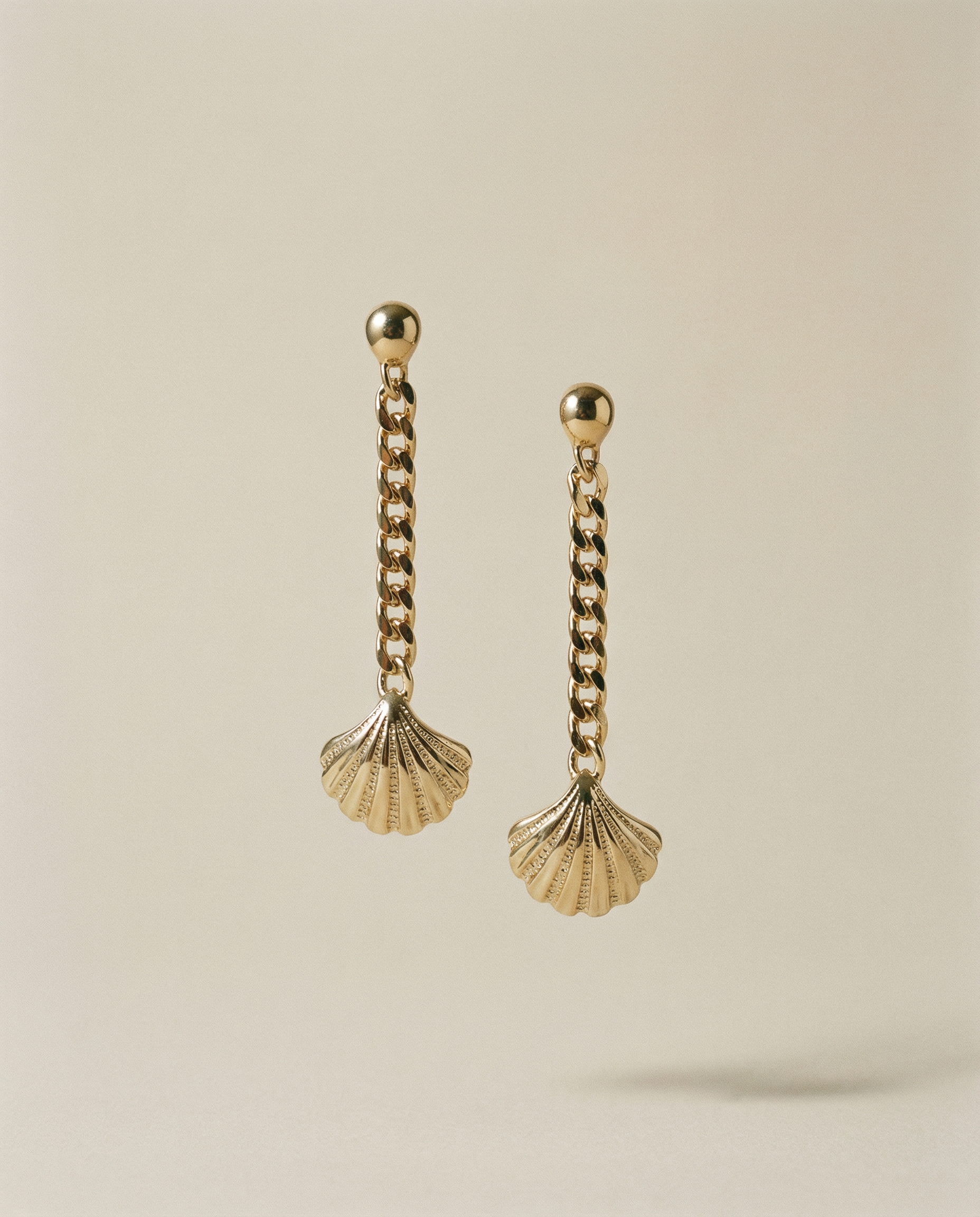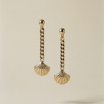 Pendientes vintage auténticos de los años 90 con cierre de tuerca. Diseño colgante en cadena dorada con charm de concha marina texturizada en dorado. Pieza ligera, llamativa y perfecta para aportar un toque retro y sofisticado a cualquier look. Ideal para amantes del estilo nostálgico, moda ochentera y estética marina.
