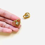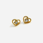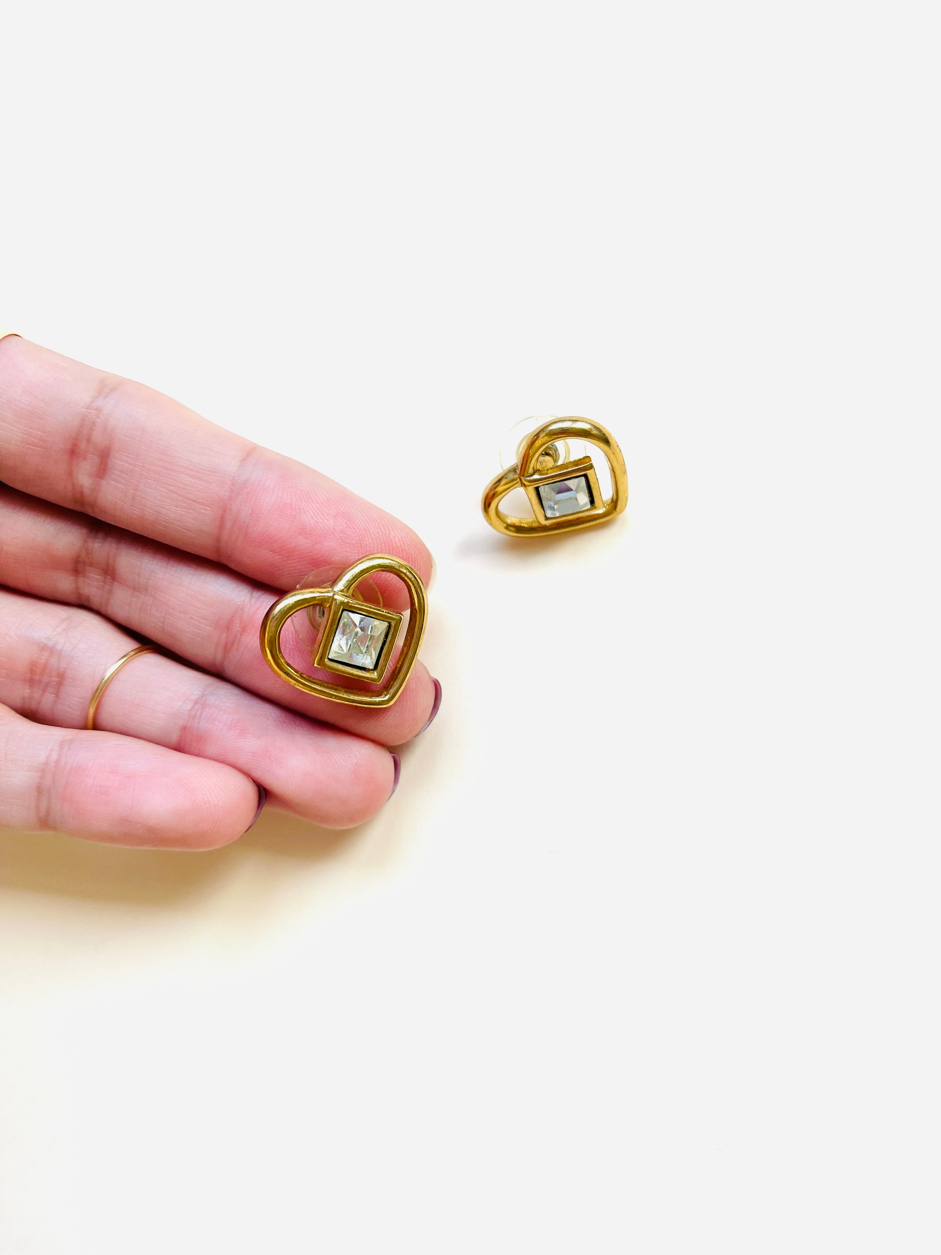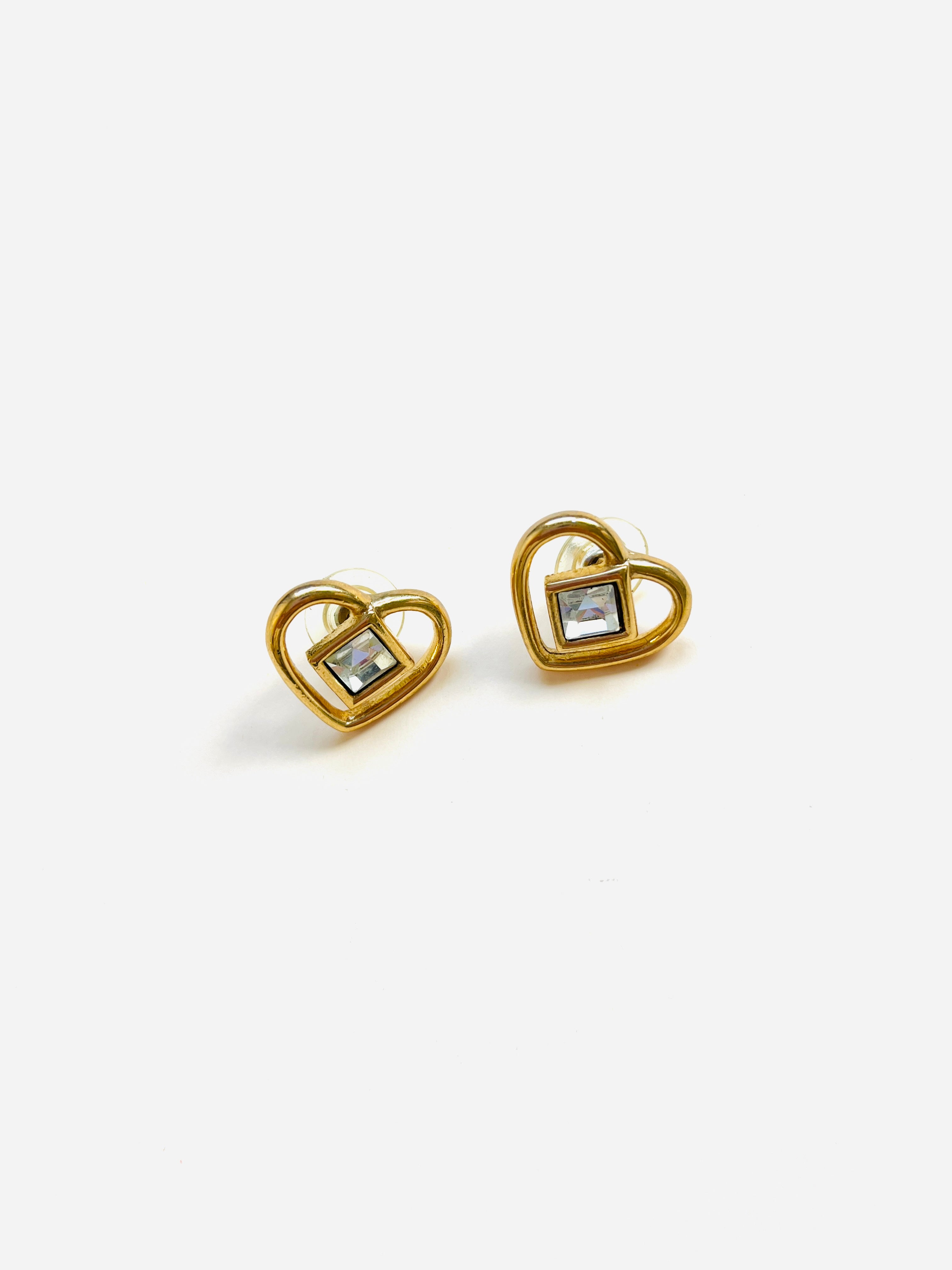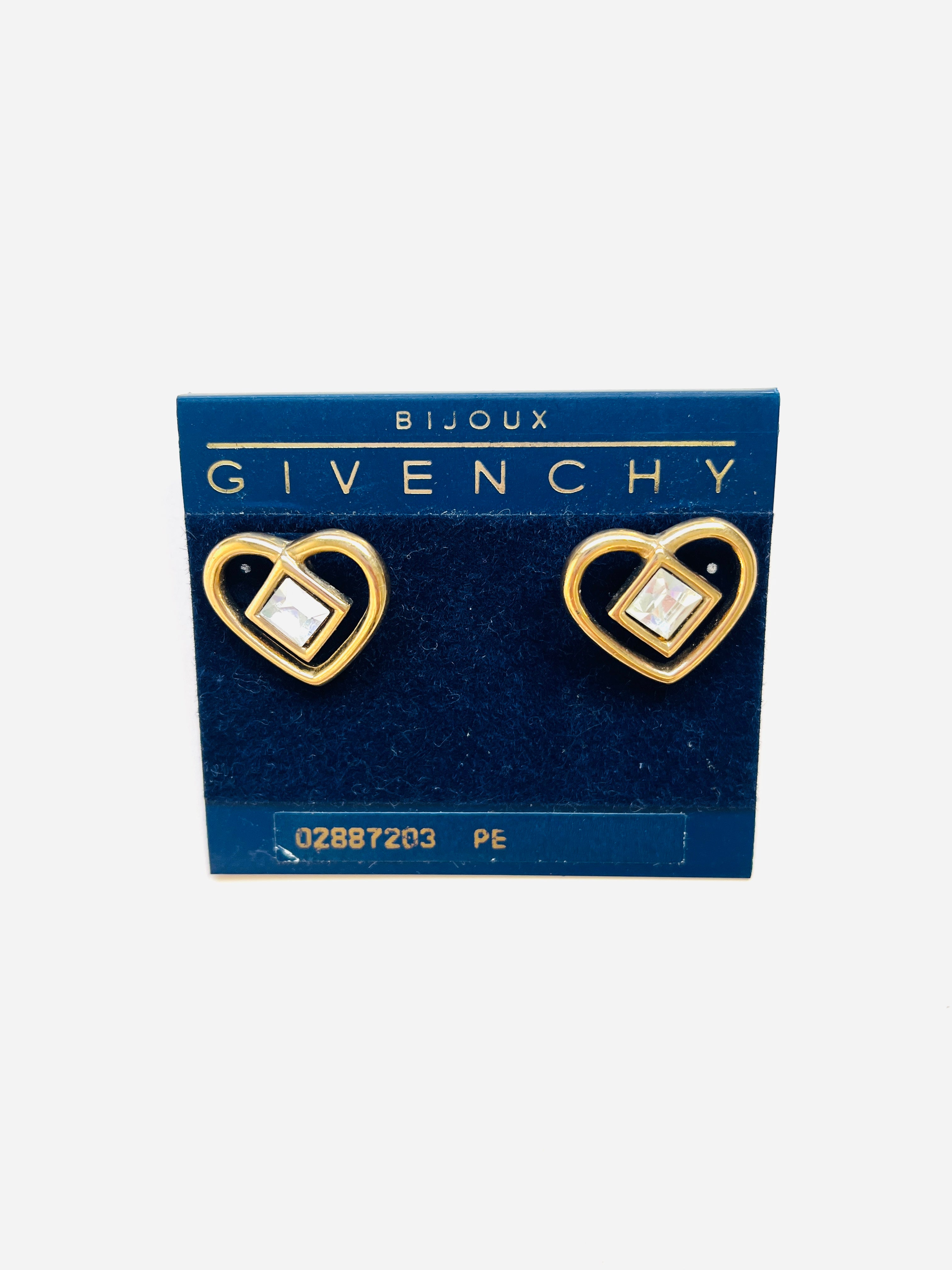 Pendientes vintage originales de los años 90 de la marca Givenchy. Base dorada en forma de corazón con apliques de cristal blanco.