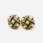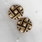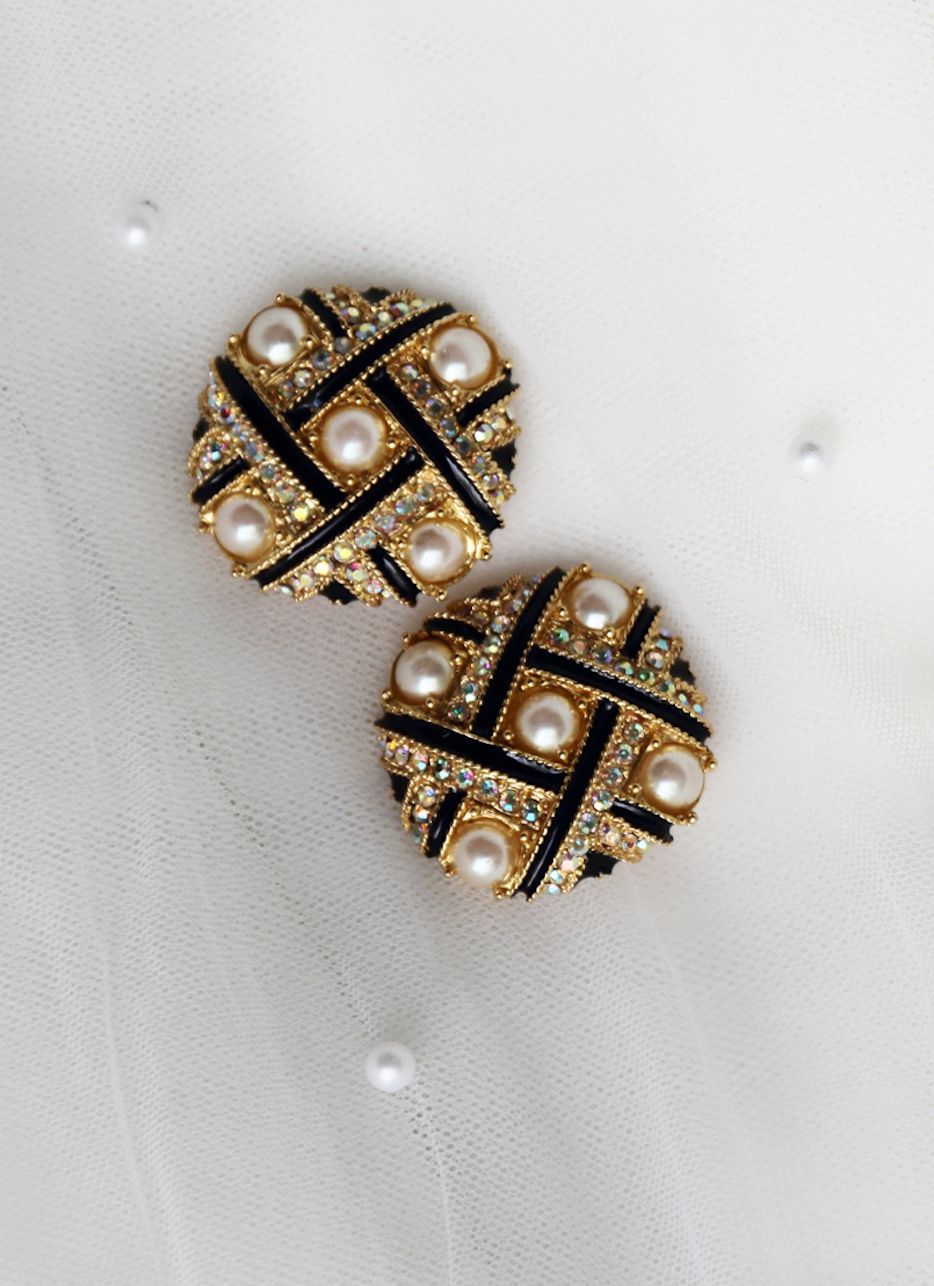 Materiales: chapado en oro, esmaltado negro, cristal blanco y perla sintética