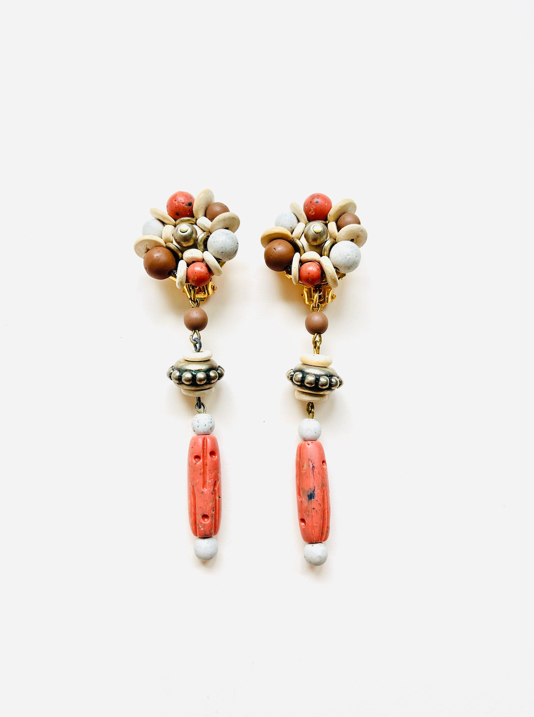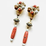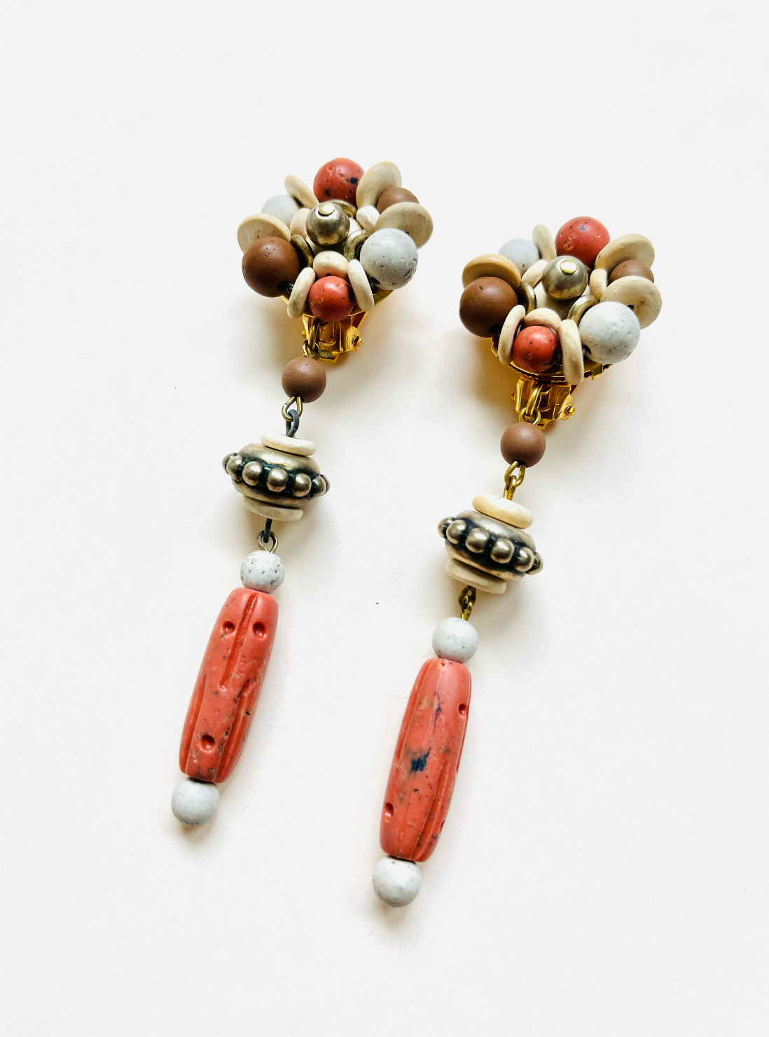 Maxi pendientes vintage originales de los años 90. Base dorada con cierre de clip y abalorios multicolor.
