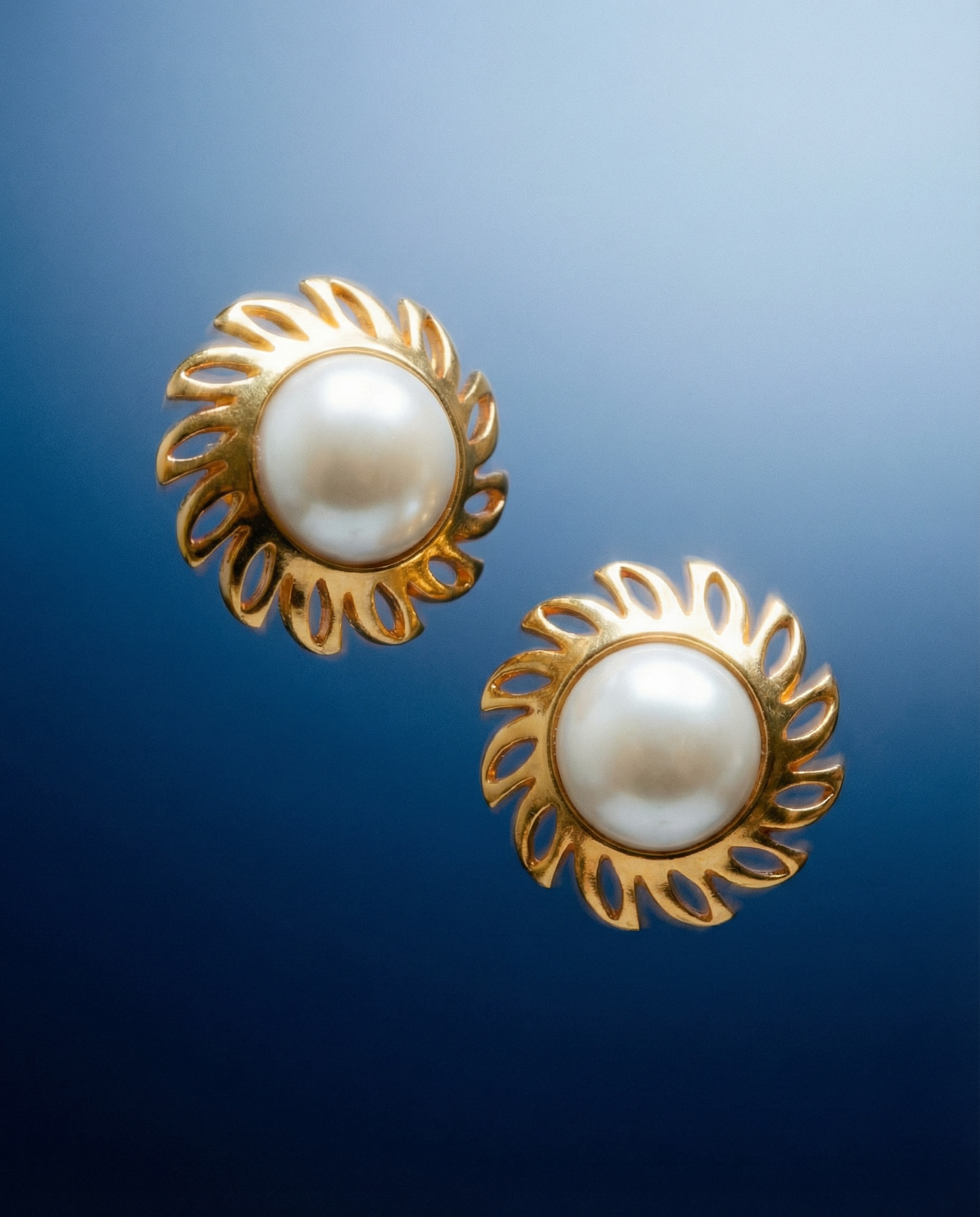 Pendientes vintage originales de los años 90 con cierre de clip. Base dorada con perla blanca central.