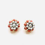 Pendientes vintage originales de los años 90. Base dorada con cierre de pinza con abalorios en tonos naranja y blanco.