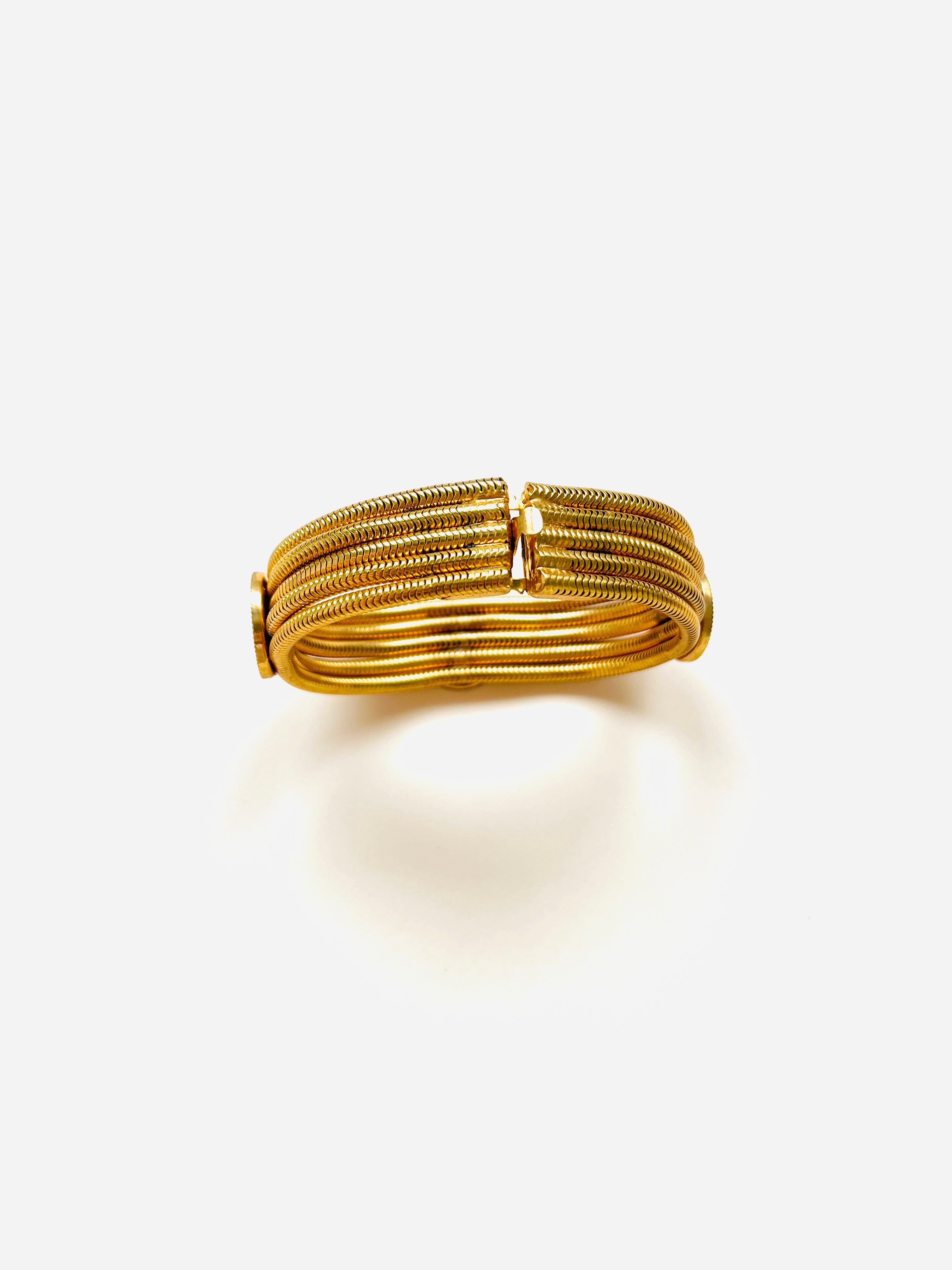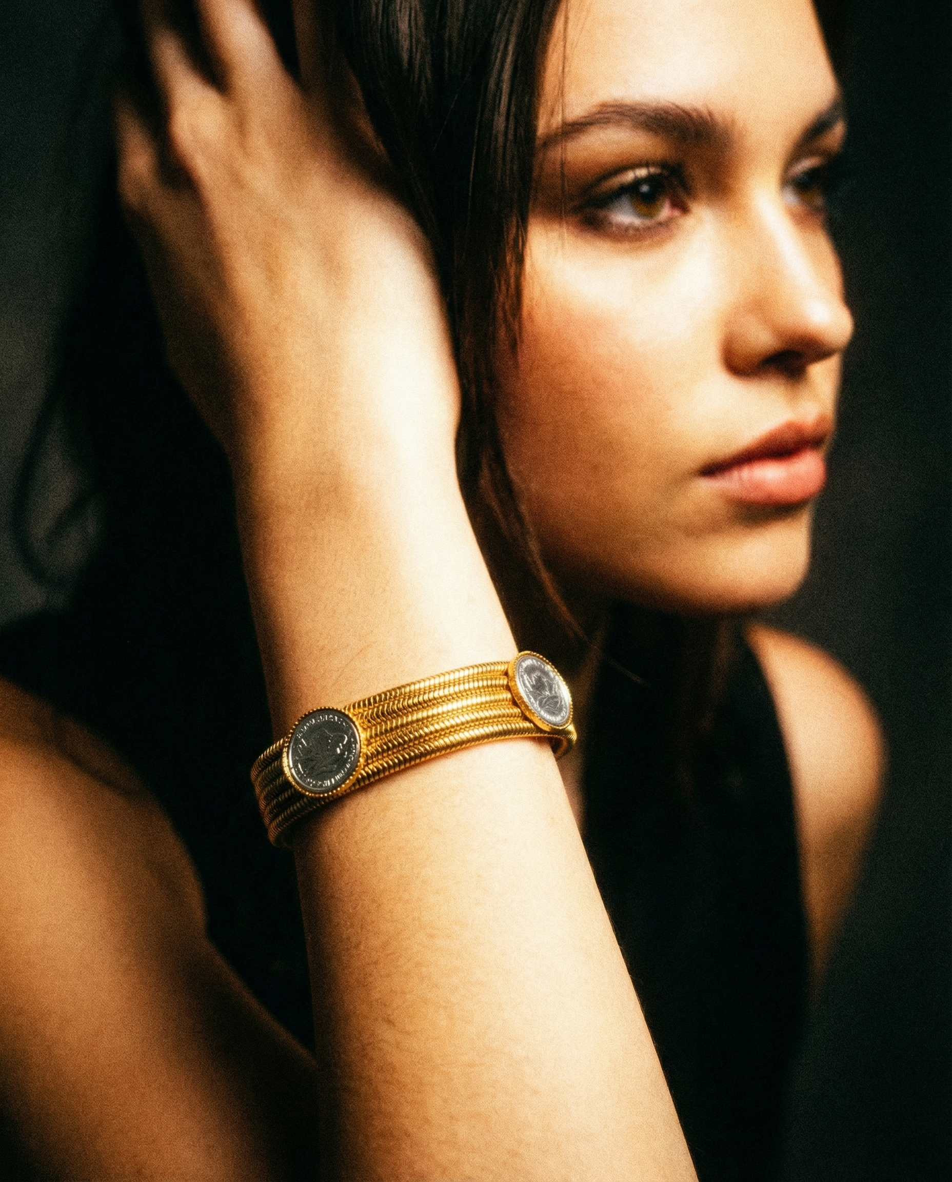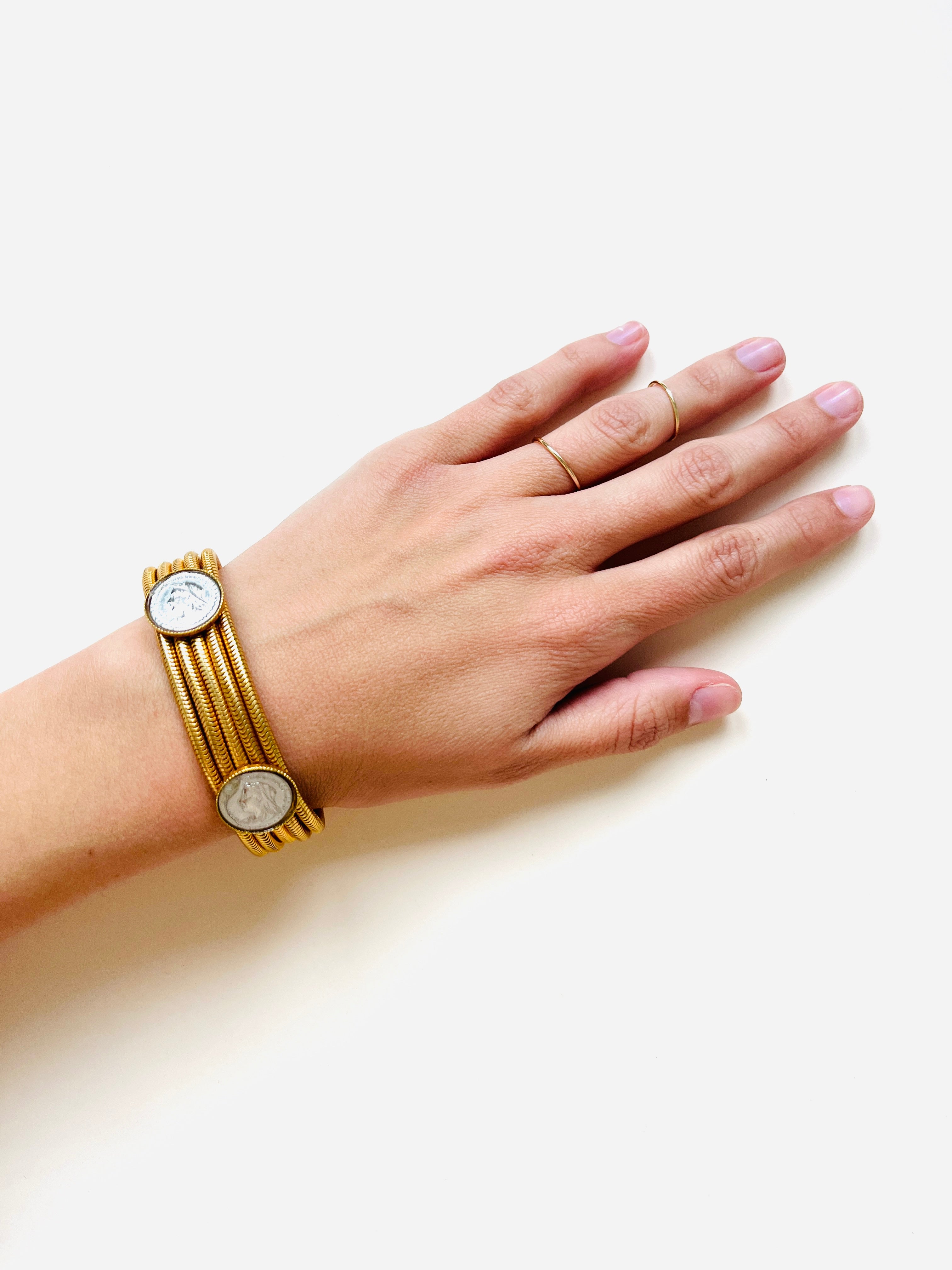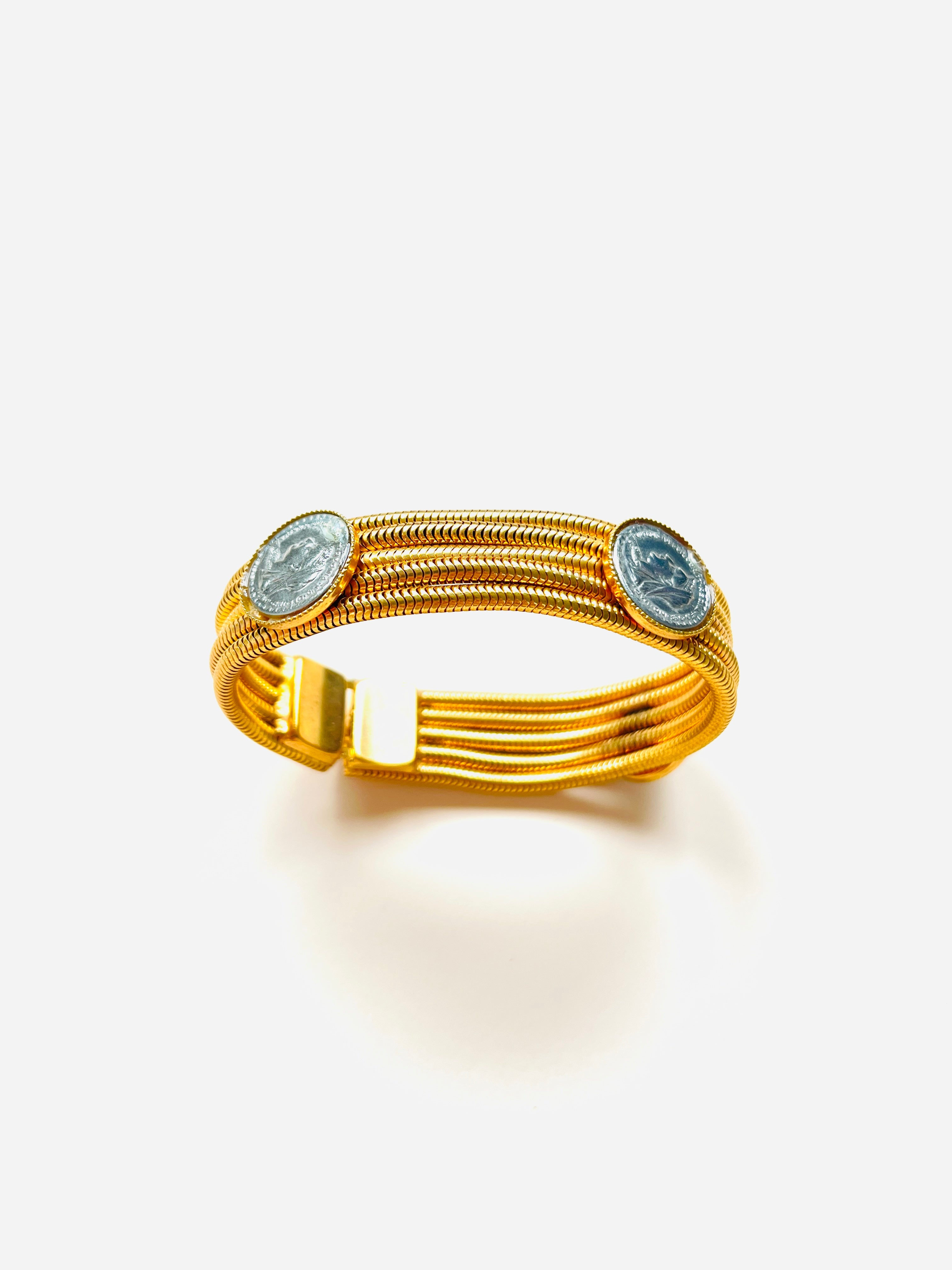 Pulsera vintage original de los años 90 dorada multicadena con detalles de monedas en plata.