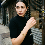 Pulsera vintage original de los años 90. Base dorada con eslabones en forma de corazón con cierre de barra.
